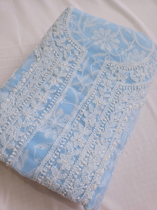 Pure Organza Silk 2-Piece Suit Set (Ice Blue) (PS026)