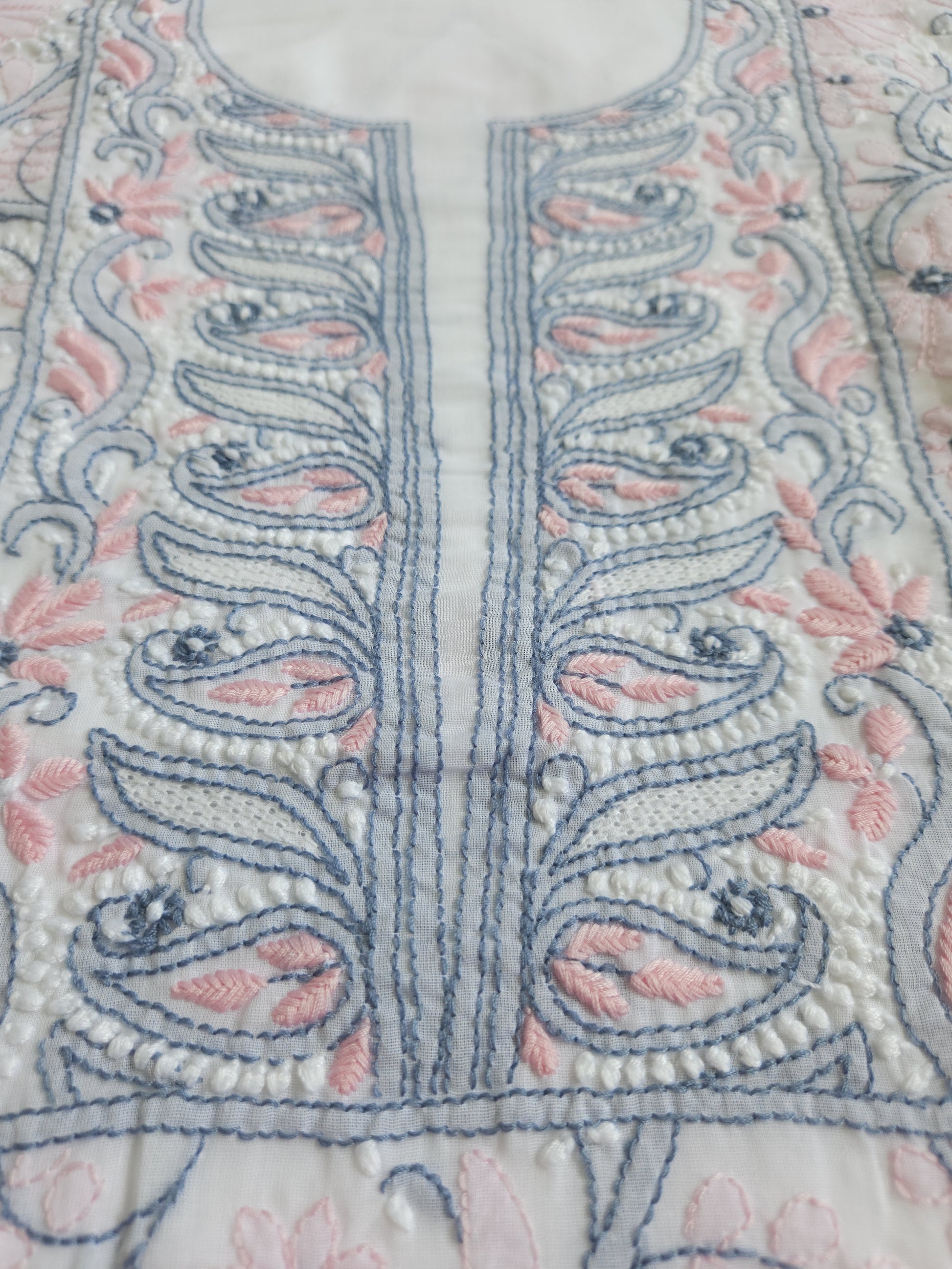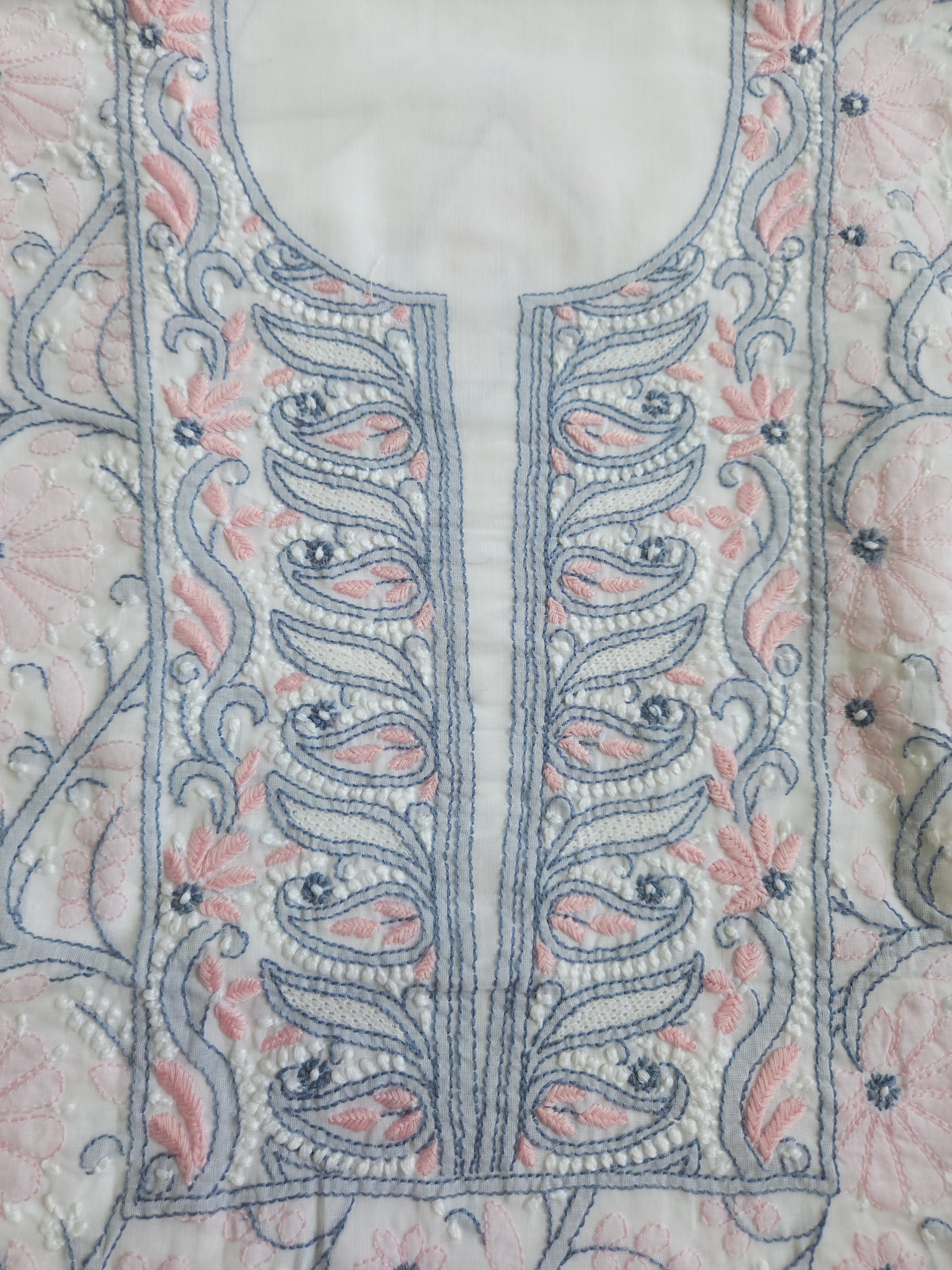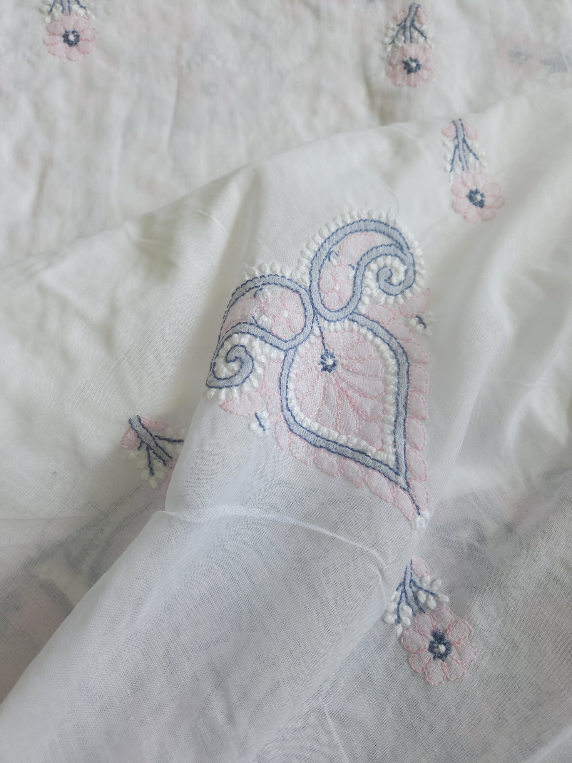 Colour: White Base with Gray and Pink coloured thread embroidery.