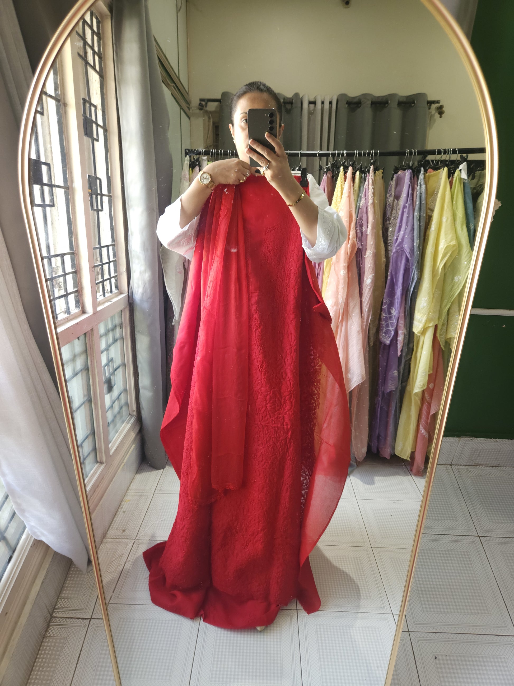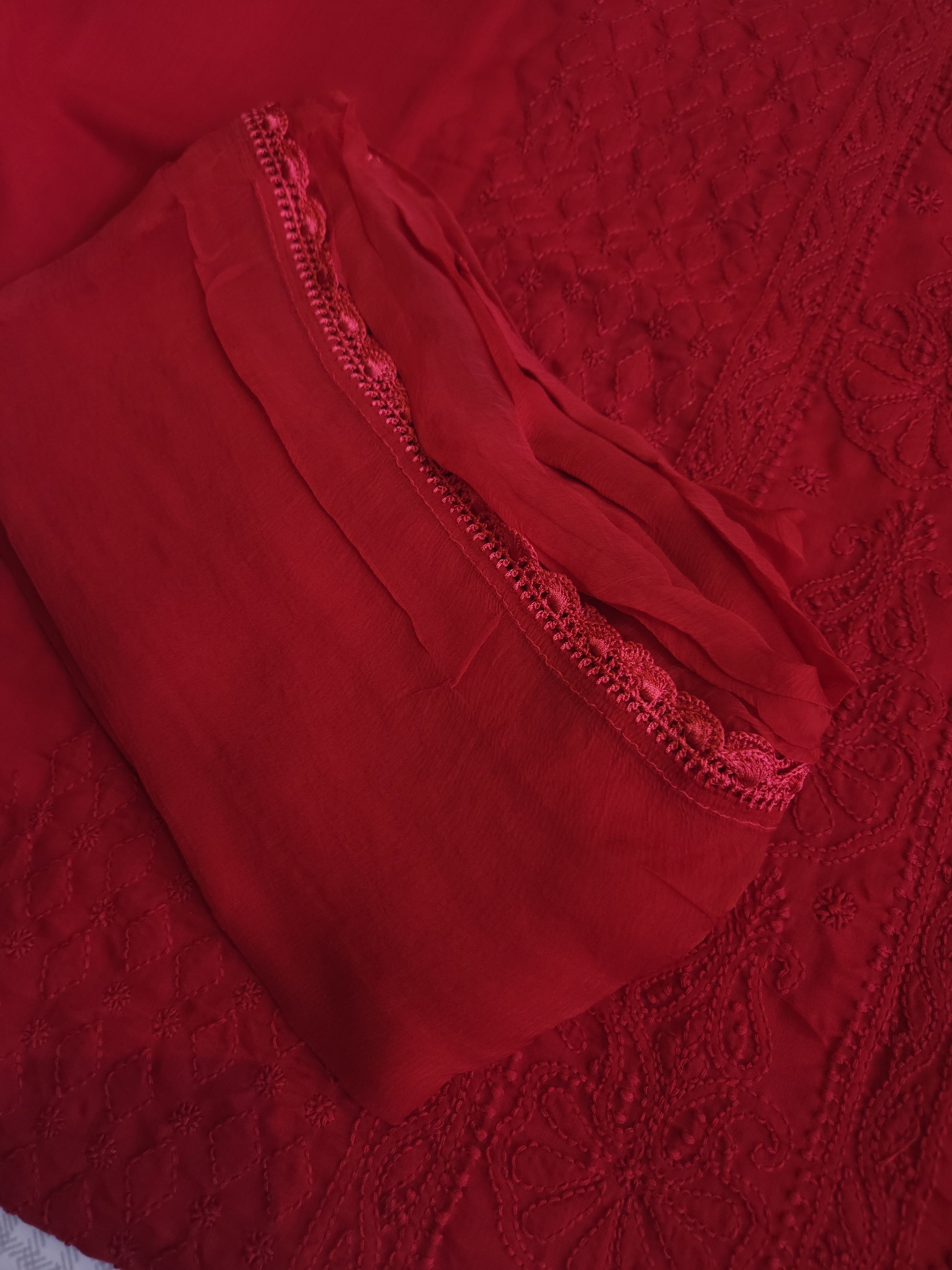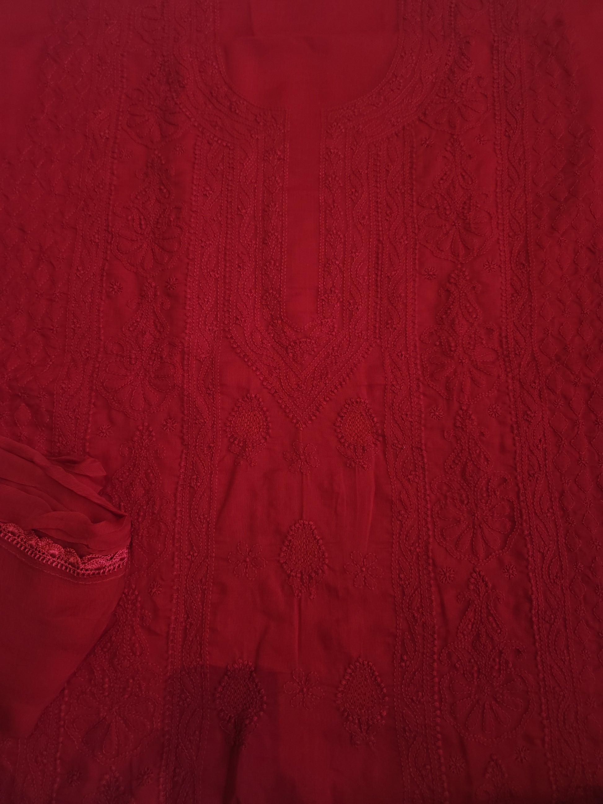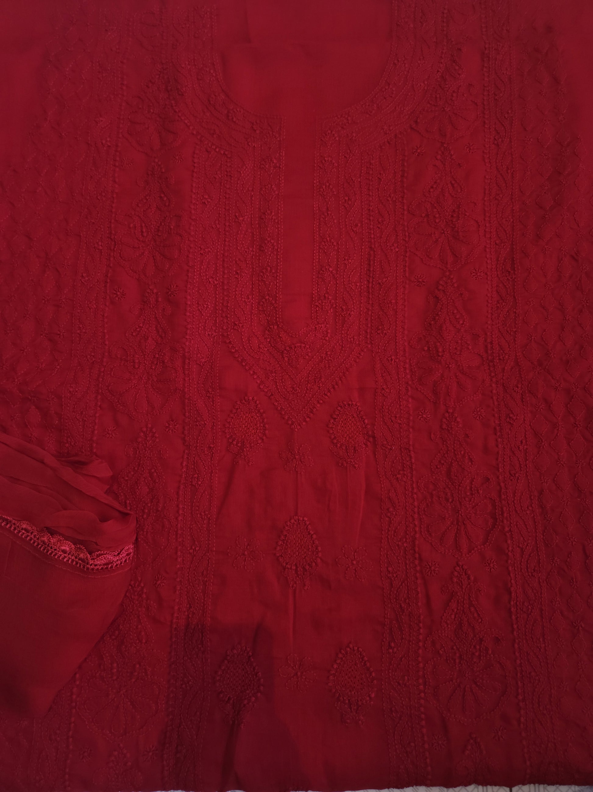 Authentic Lucknowi Handwork Chikankari, Full Jaal Kurta with Border Bootie Work on Salwar and Sleeves, with Chiffon Dupatta.