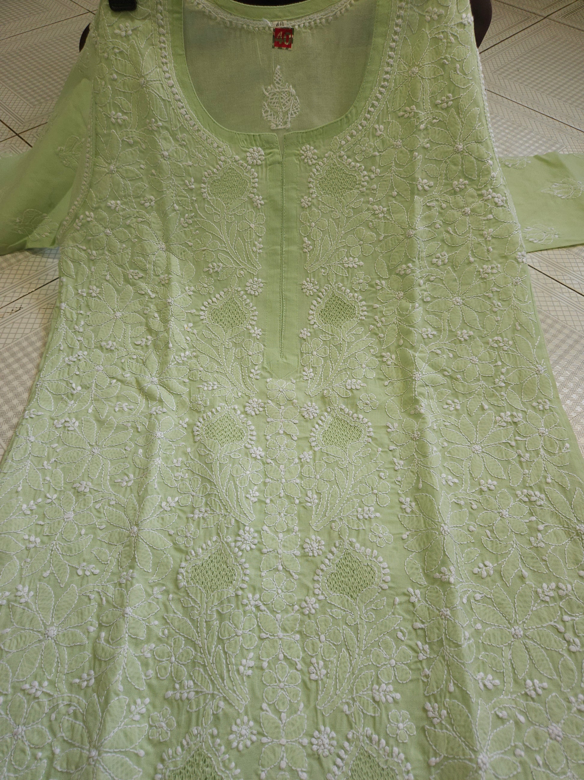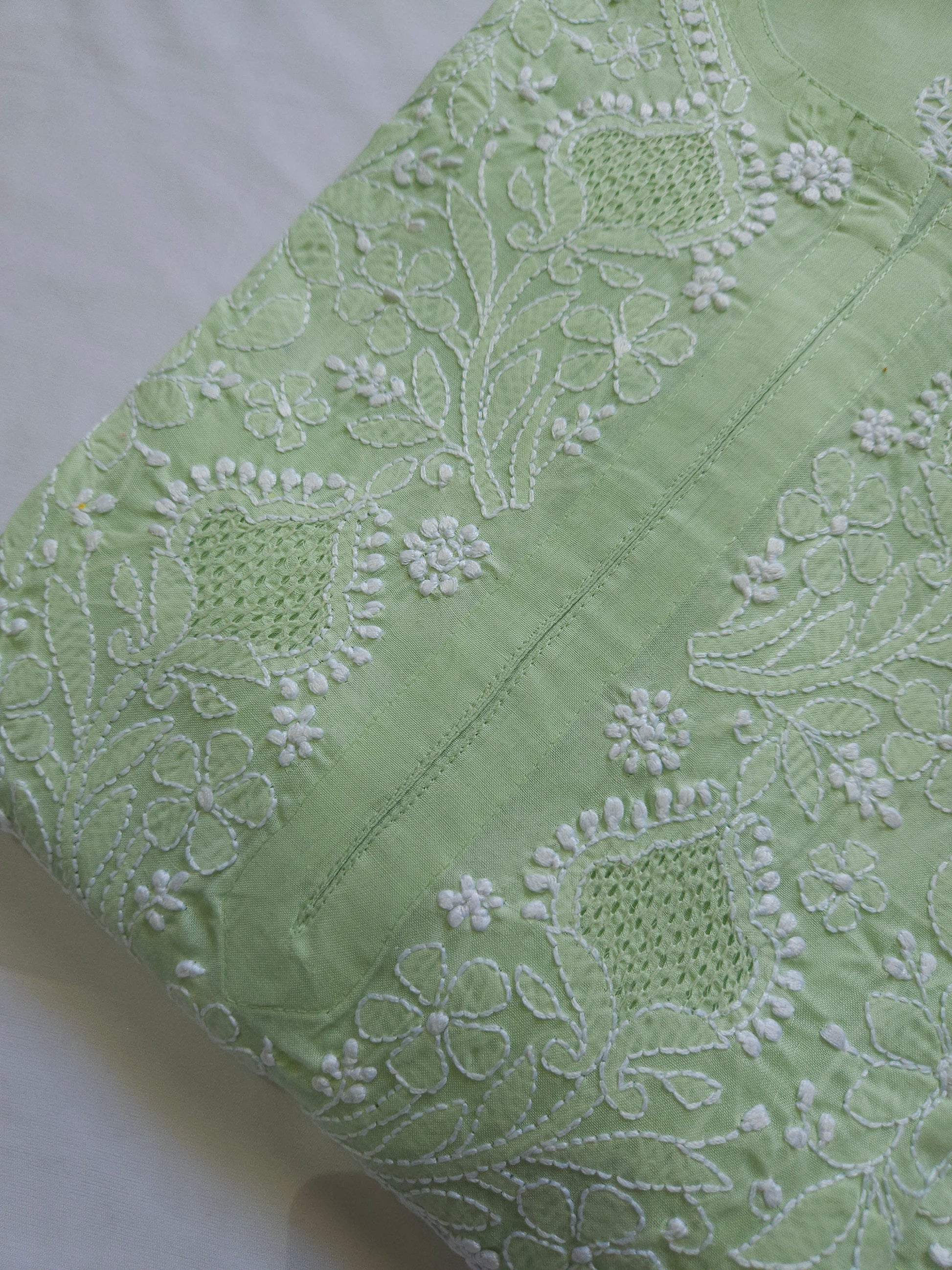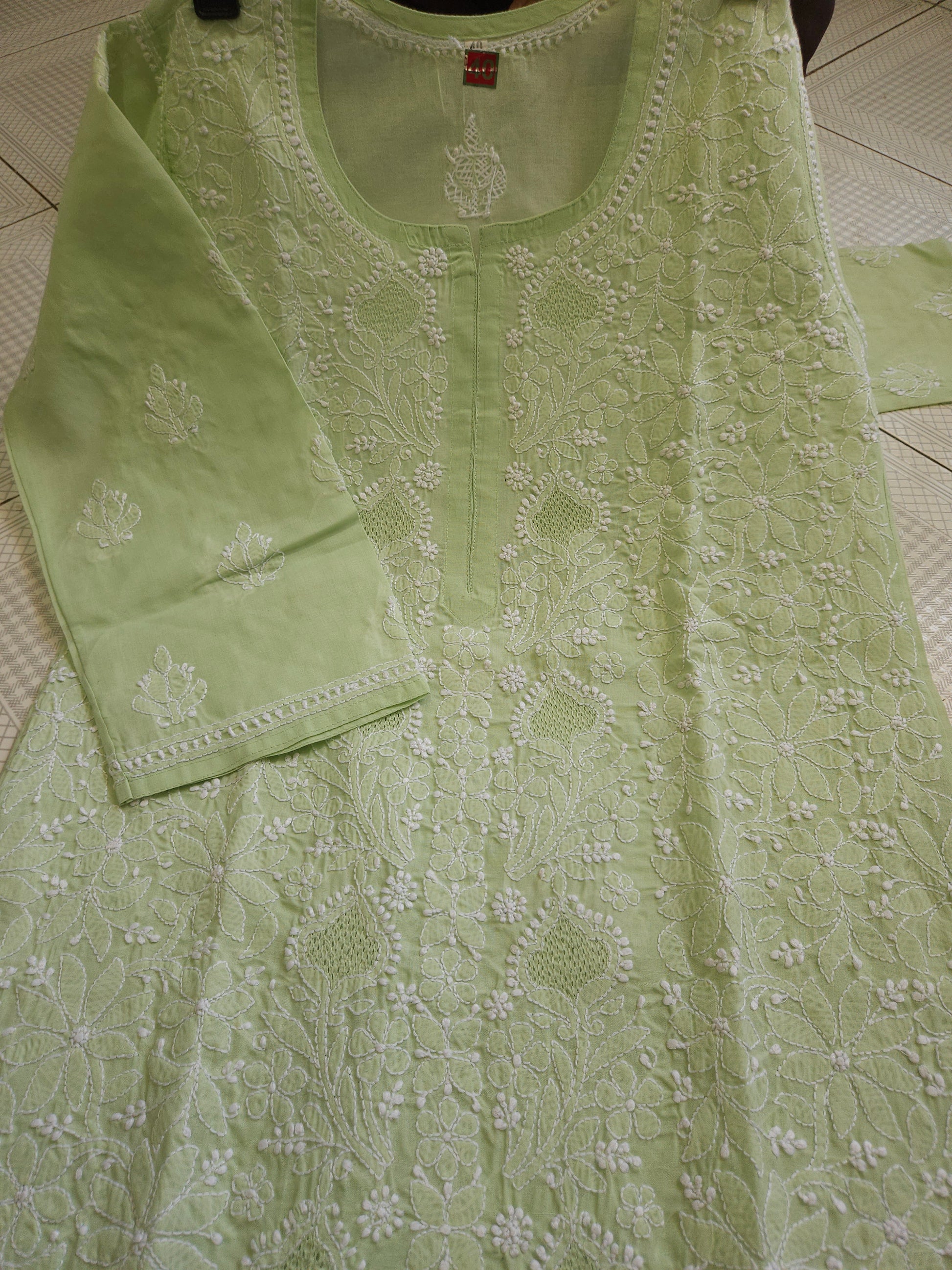 Authentic Lucknowi Handwork Chikankari Kurti with Full Jaal hand jaali work.