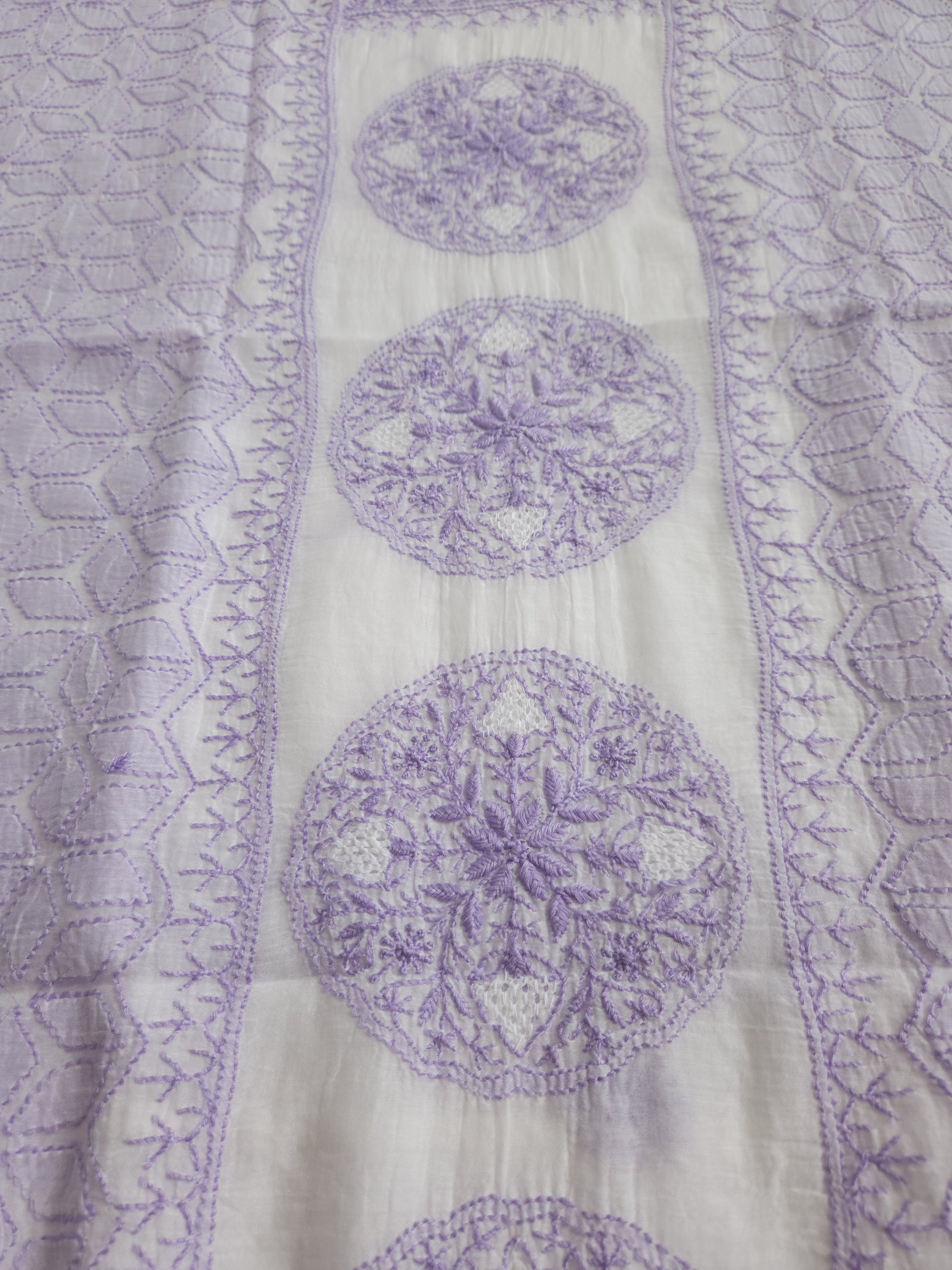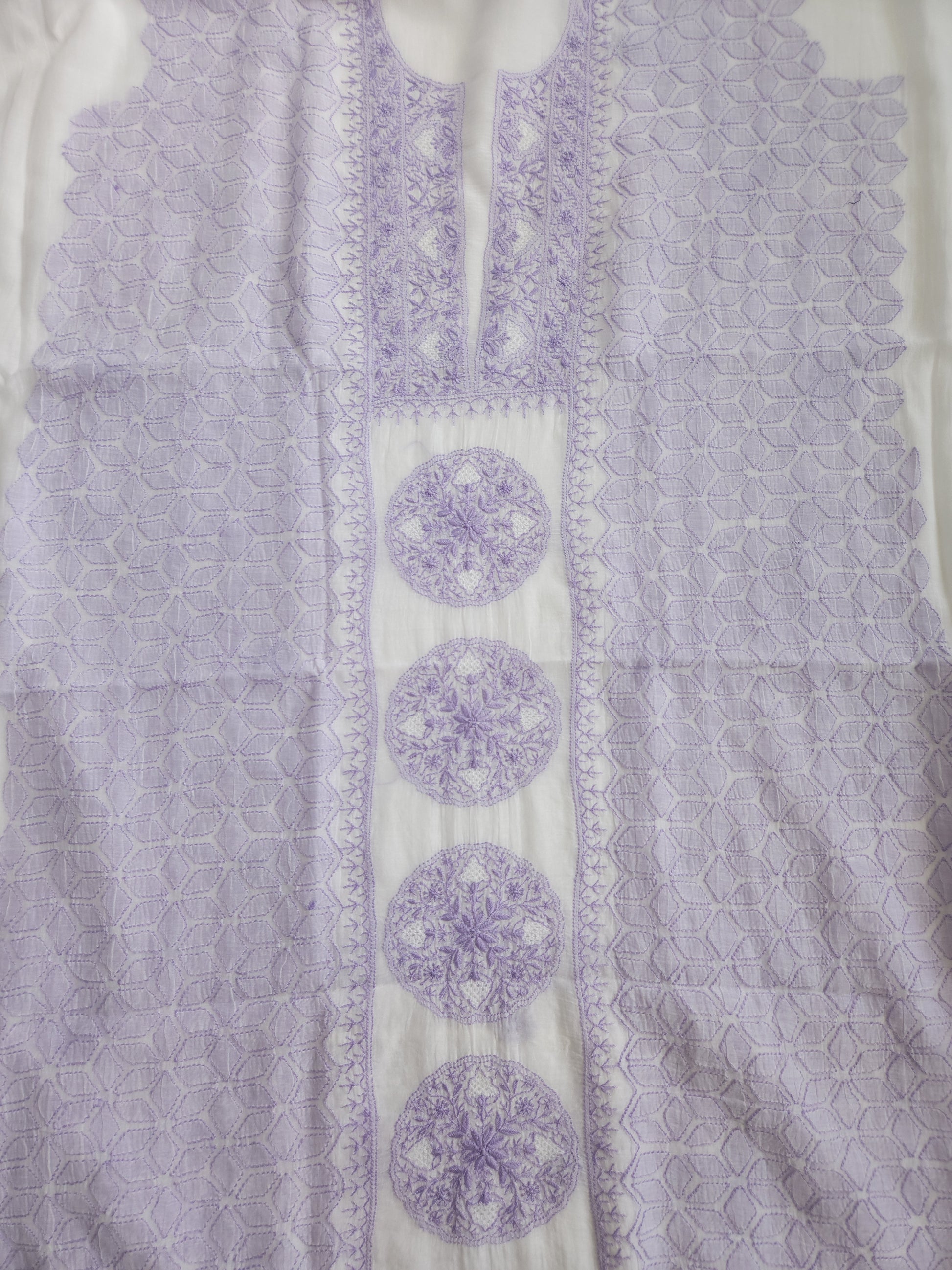 Colour: White Base with Lilac thread embroidery