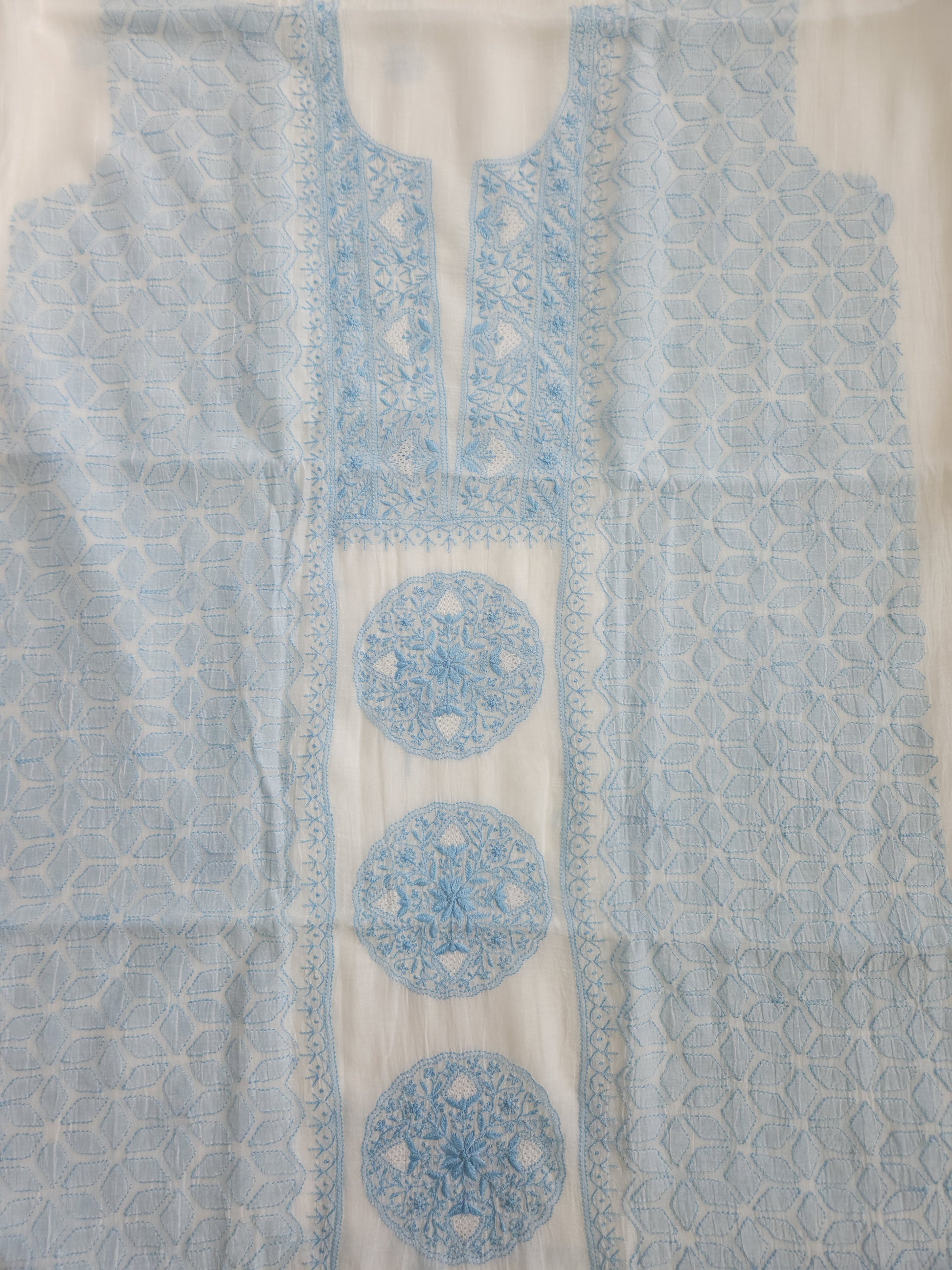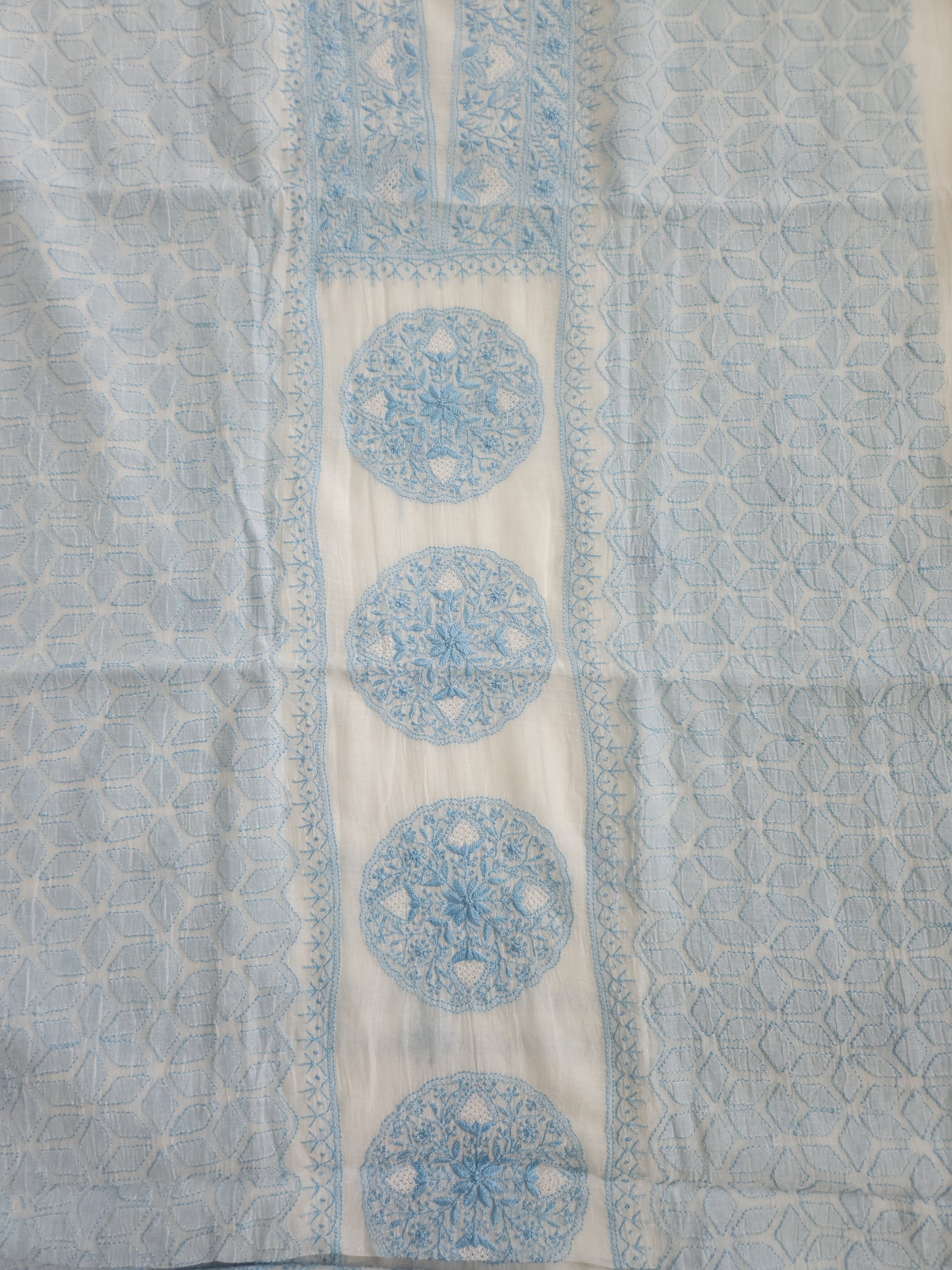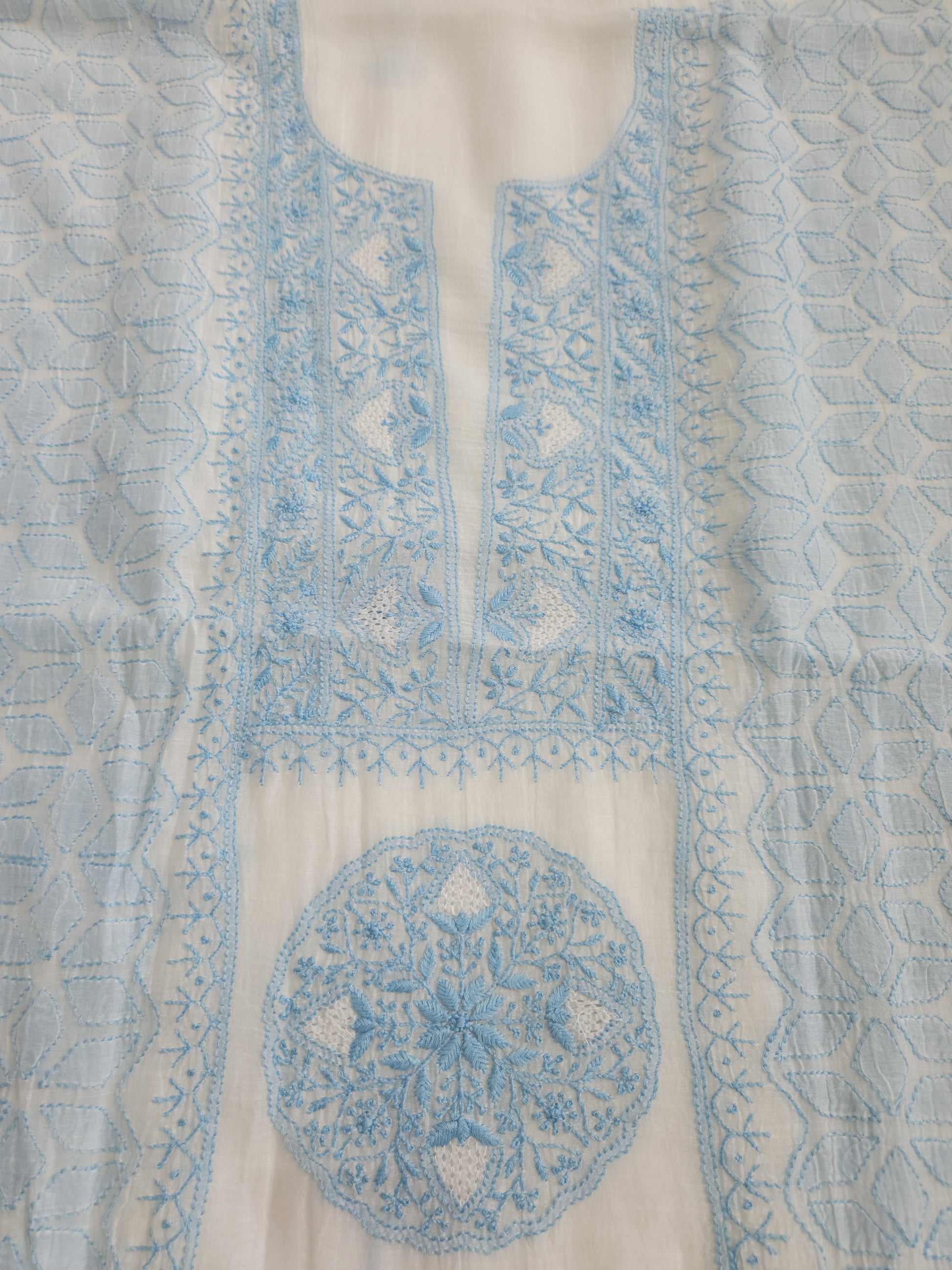 Authentic Lucknowi Handwork Chikankari, Full Front Jaal Kurta with Border Bootie Work on Sleeves, with Malmal Chanderi 2-Side Border Bootie Dupatta.