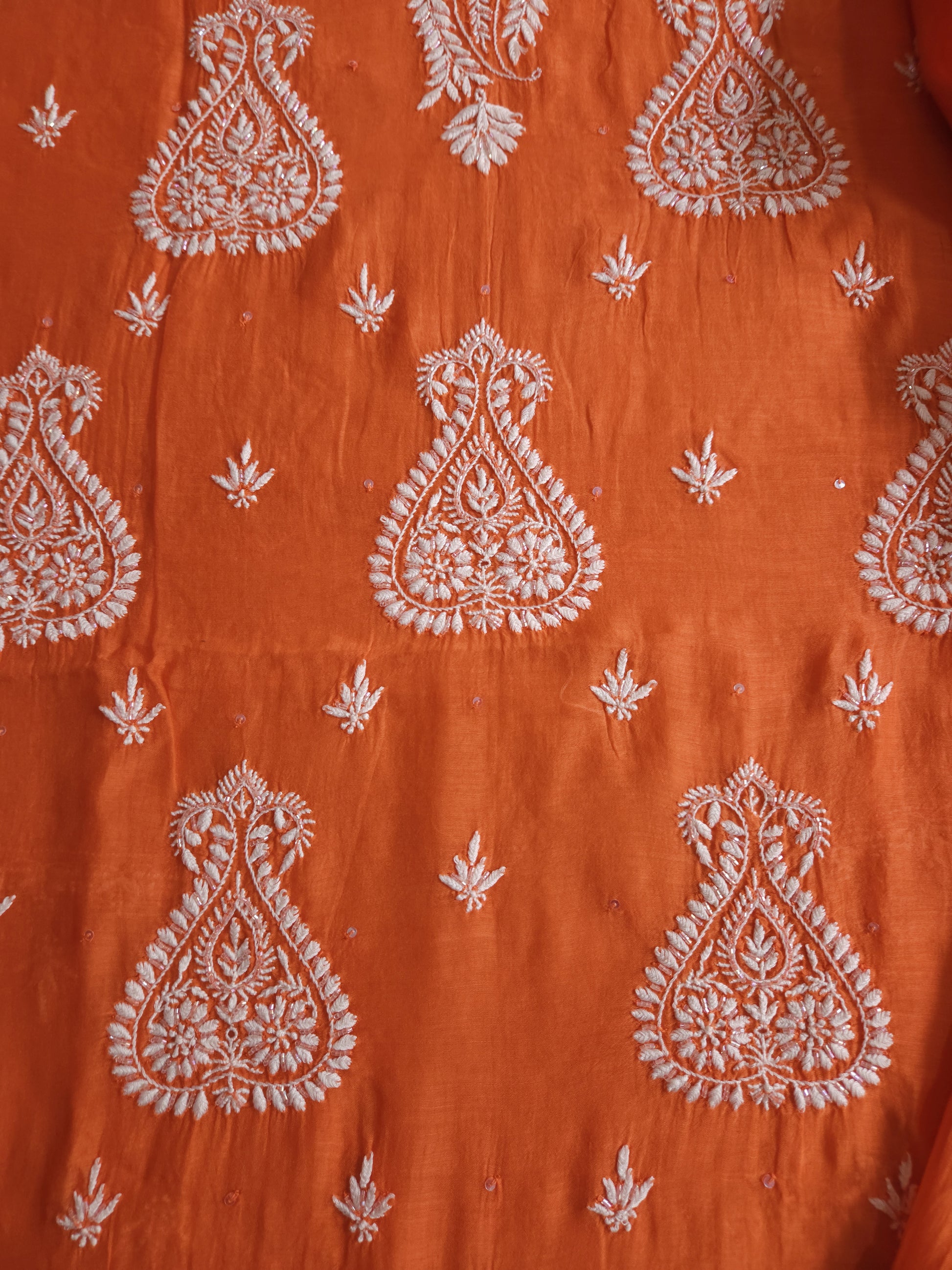 Authentic Luckhnowi Handwork Chikankari; with Embellishments of Katdana and Sequins; with Border Bootie Sleeves and Dupatta.