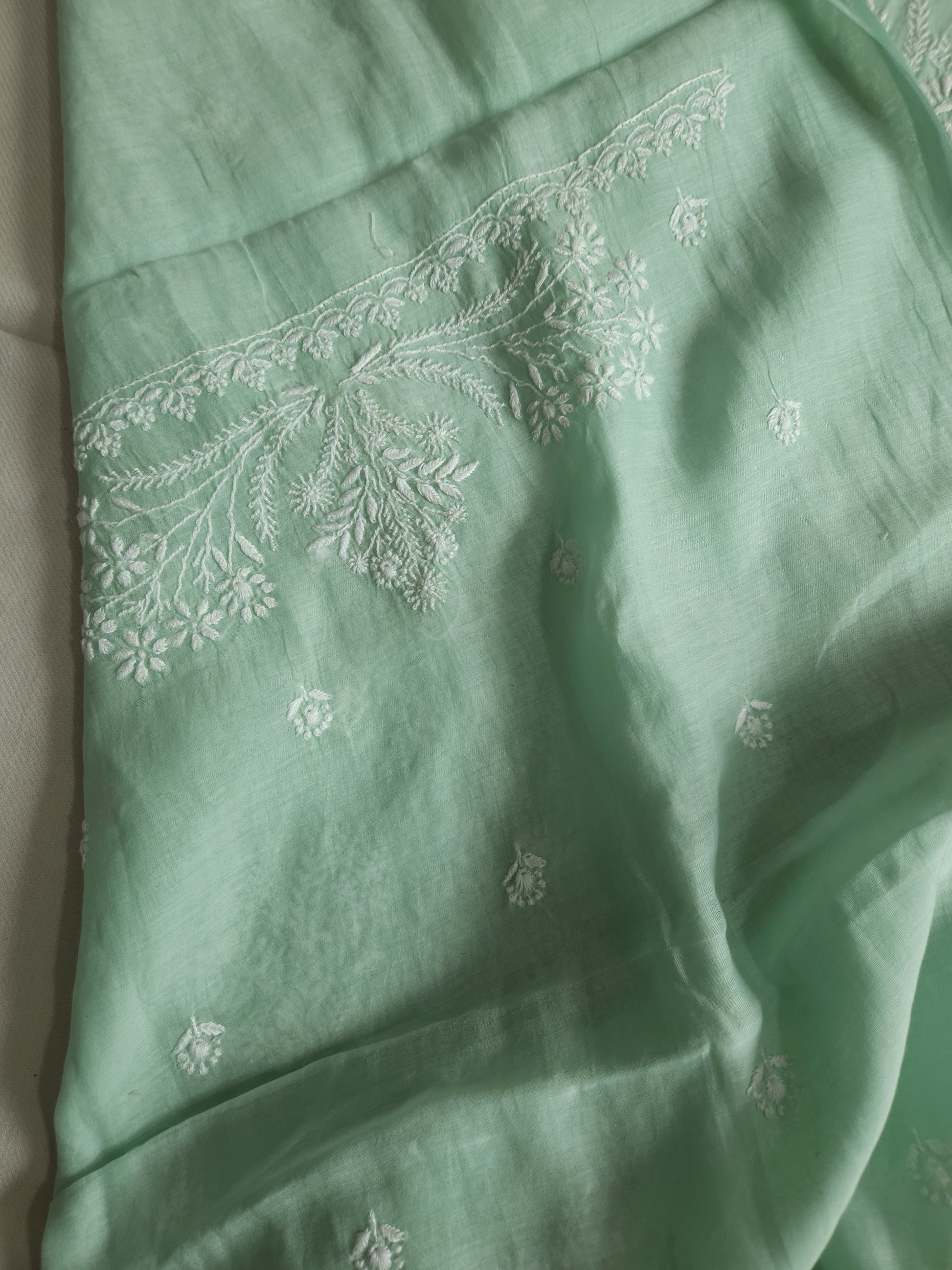 Authentic Luckhnowi Handwork Chikankari; with Border Bootie Sleeves and Dupatta.