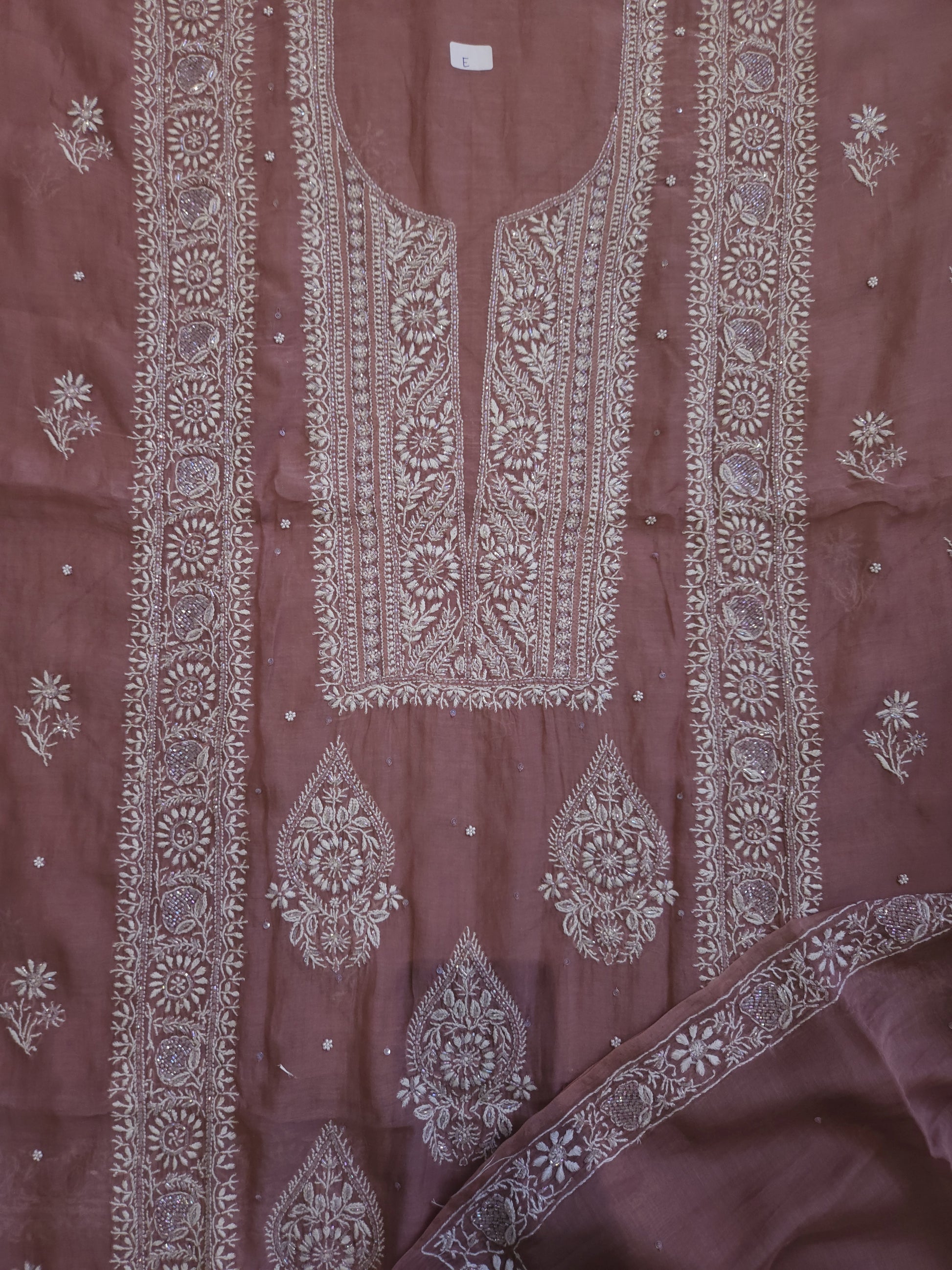 Malmal Chanderi 2-Piece Set (Brownish Purple)