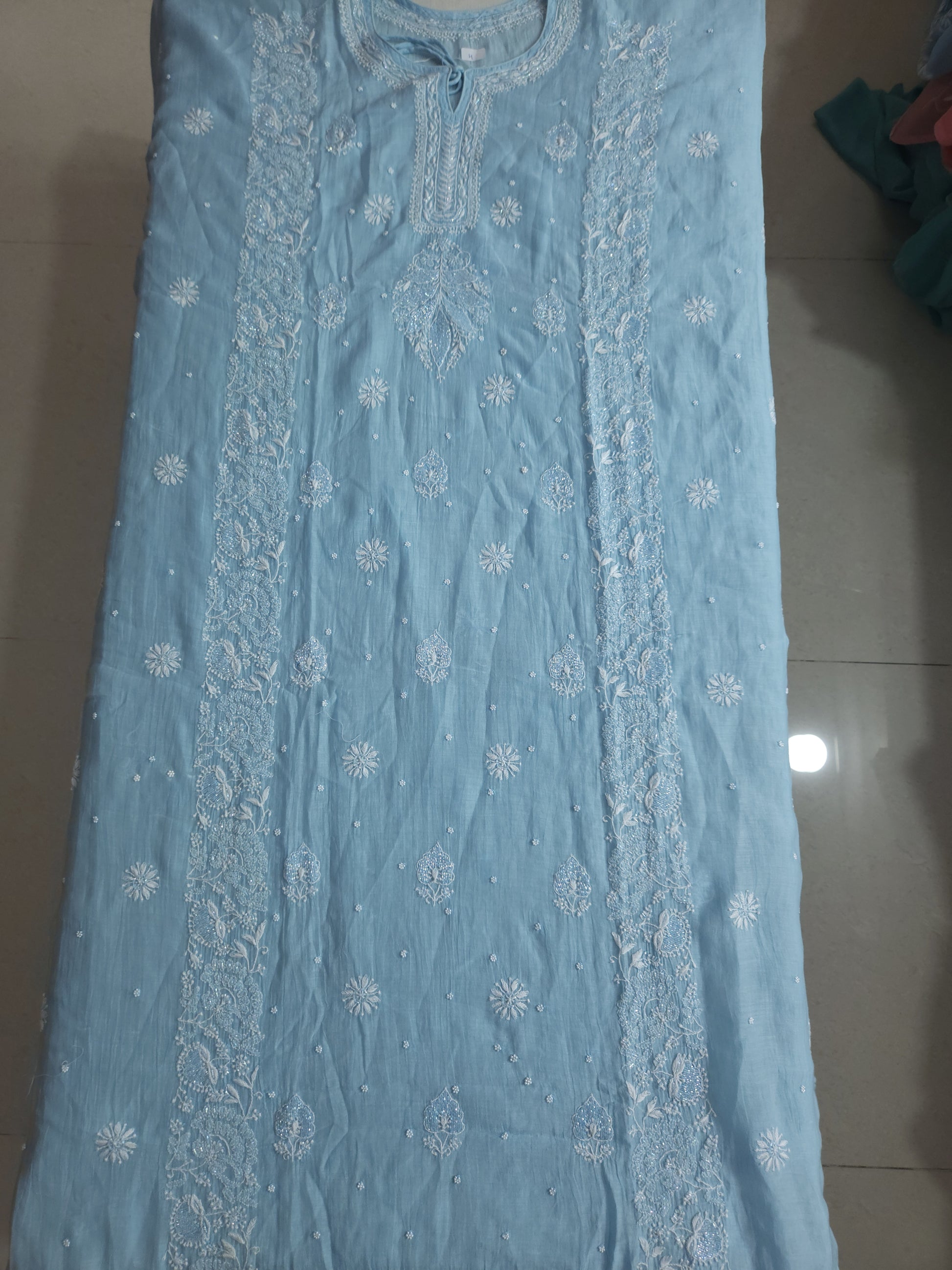 Authentic Luckhnowi Handwork Chikankari Kaftan; with Embellishments of Sequins, Pearls, and Katdana.