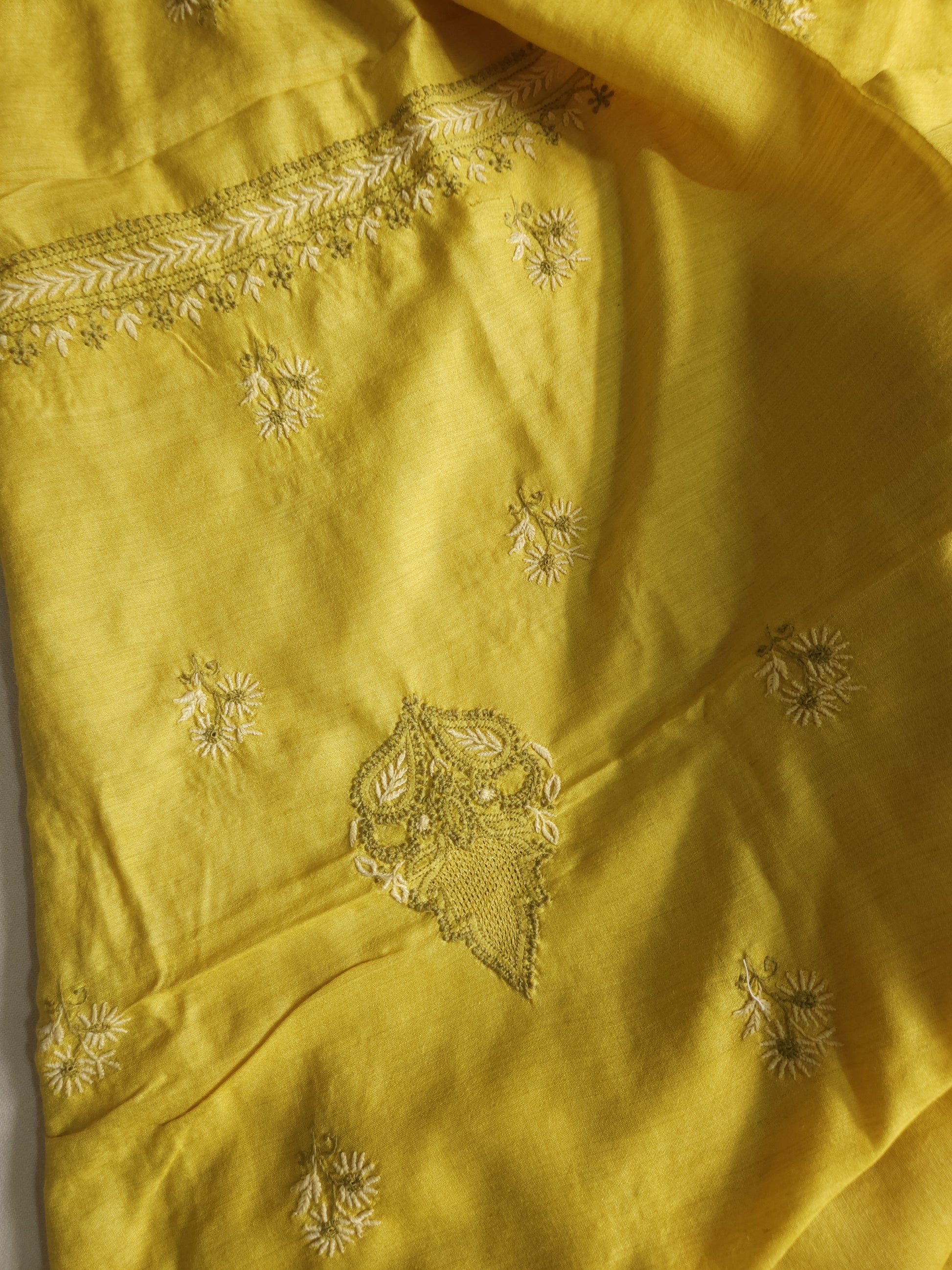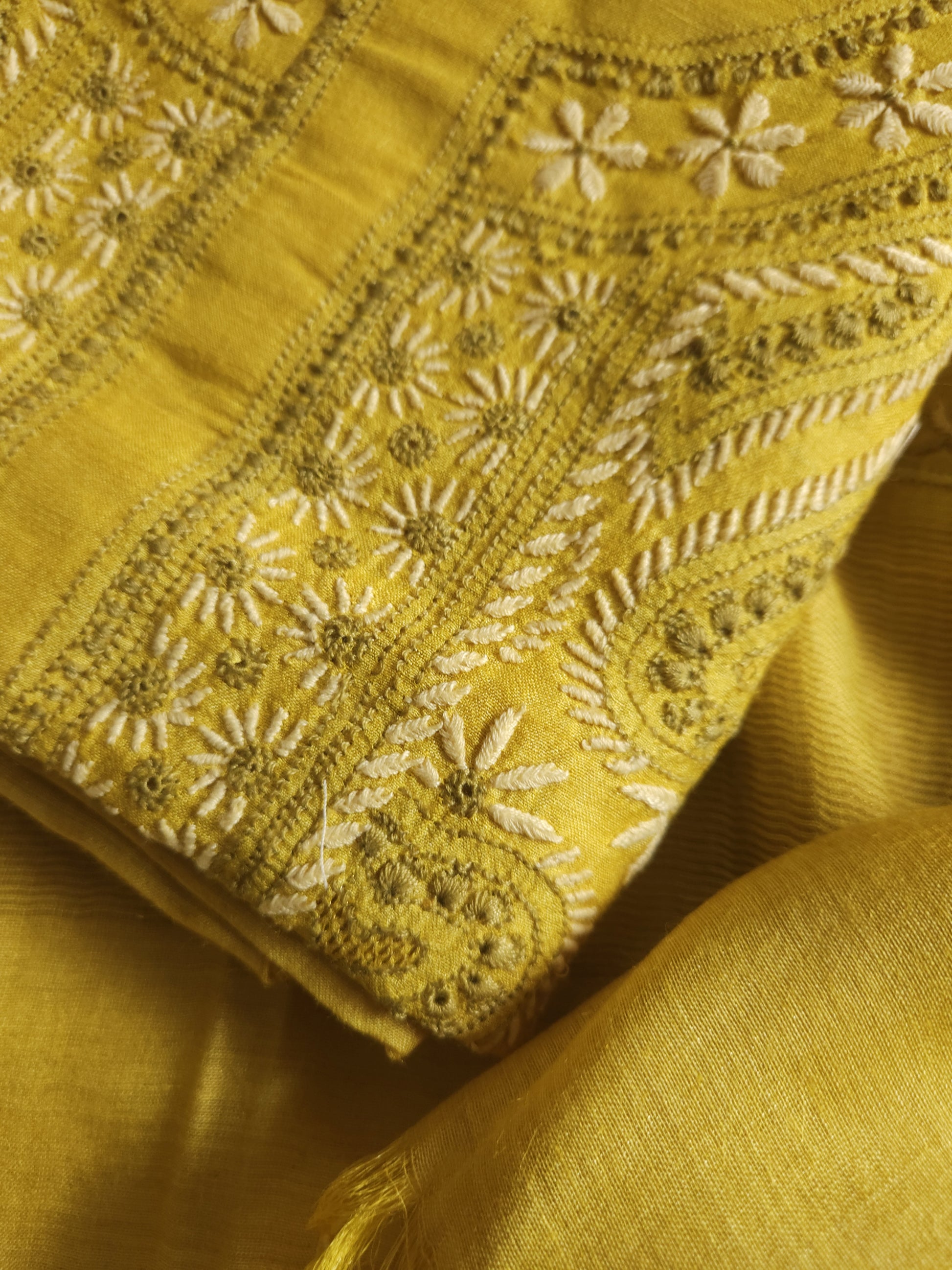 Authentic Luckhnowi Handwork Genuine 2-Taar Double Colour Chikankari; with Hand Jaali Work; with Zari Border Work Dupatta.
