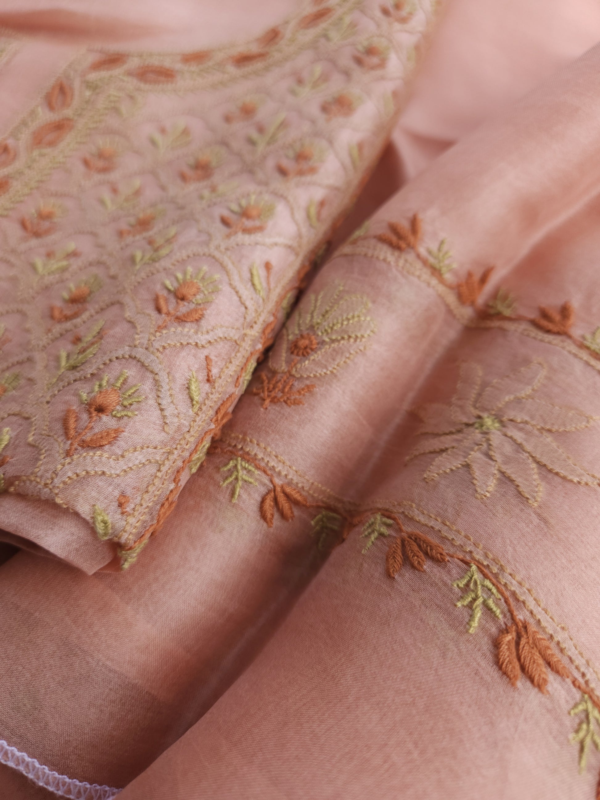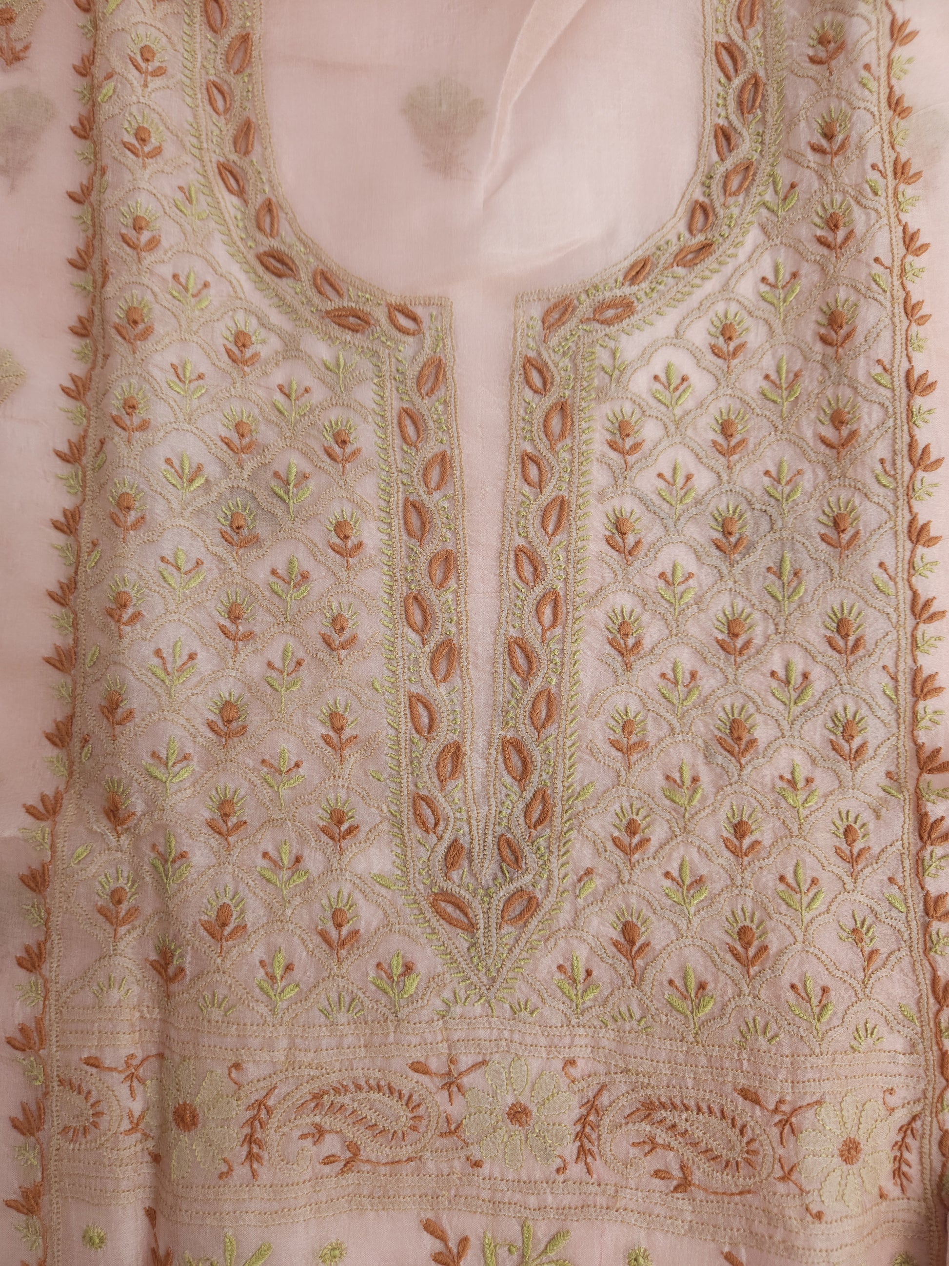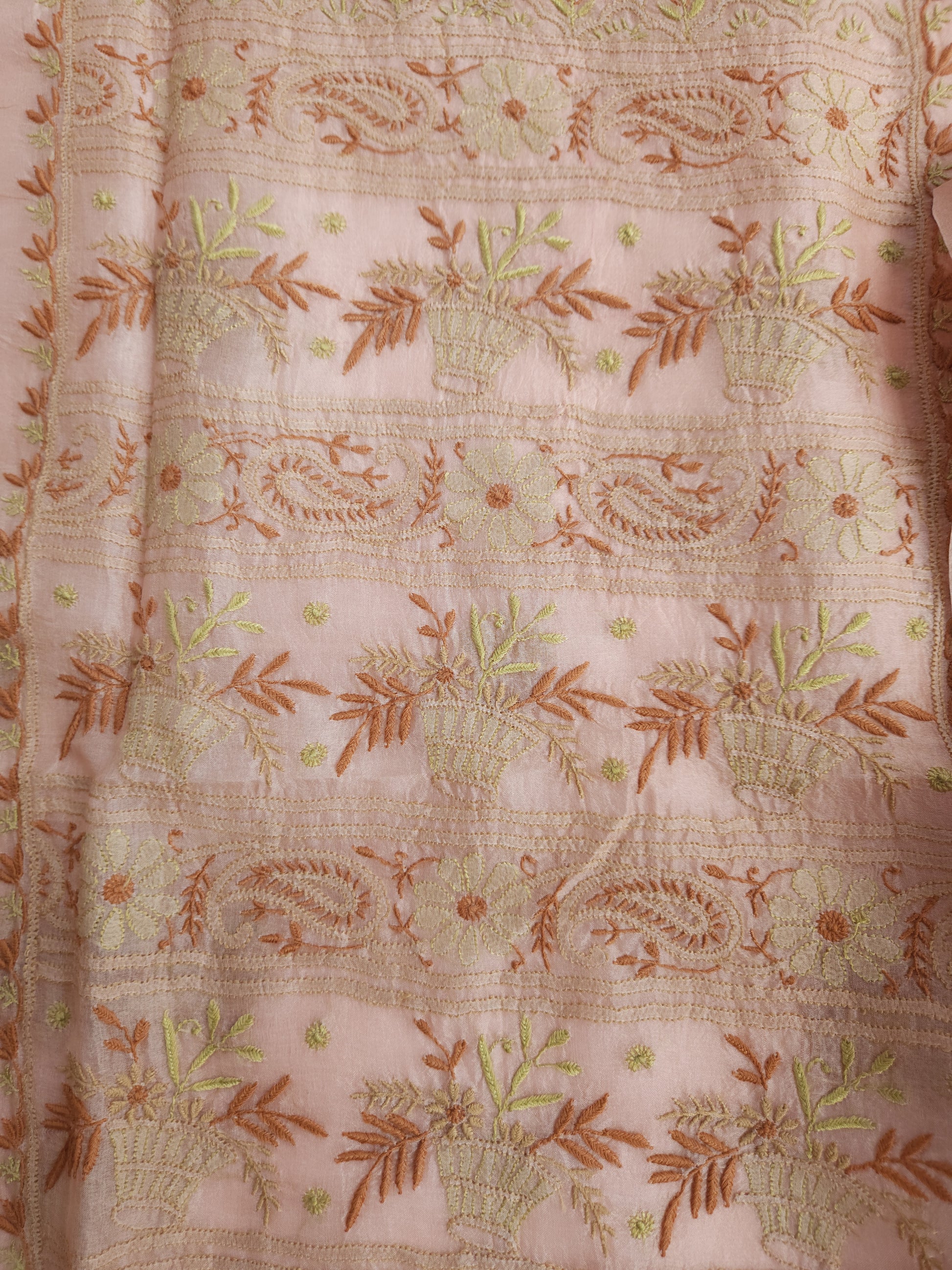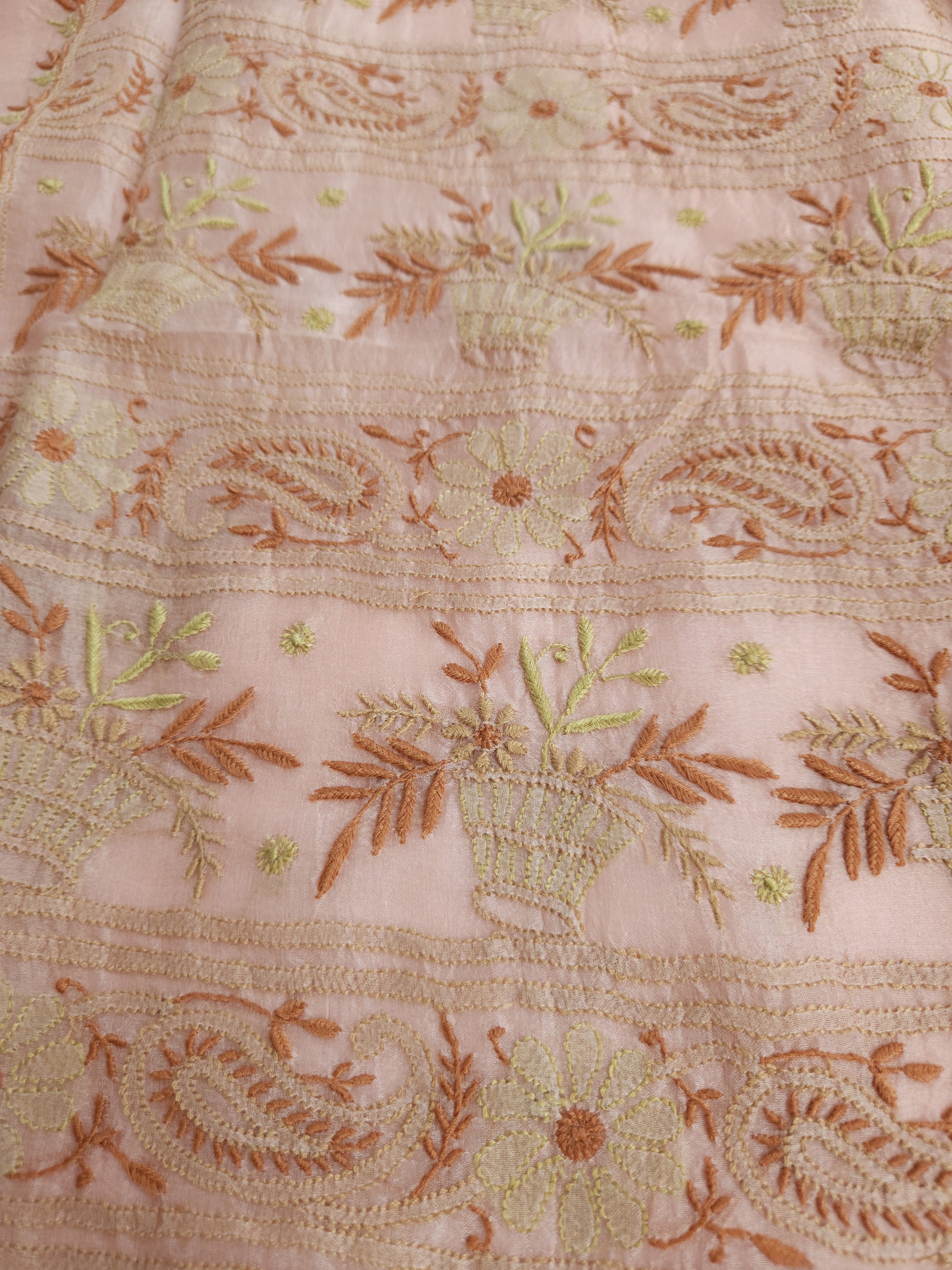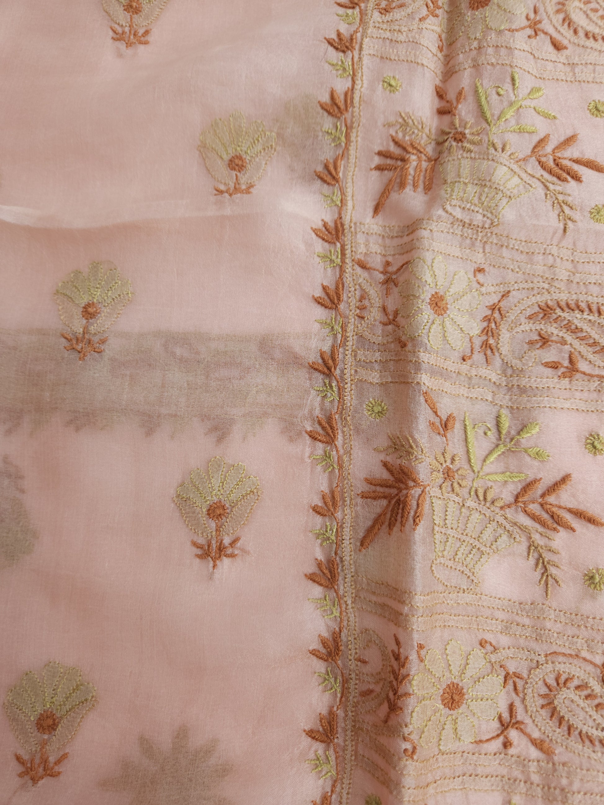 Authentic Luckhnowi Genuine 2 Taar multicoloured Thread Handwork Chikankari; with two side border booties Dupatta
