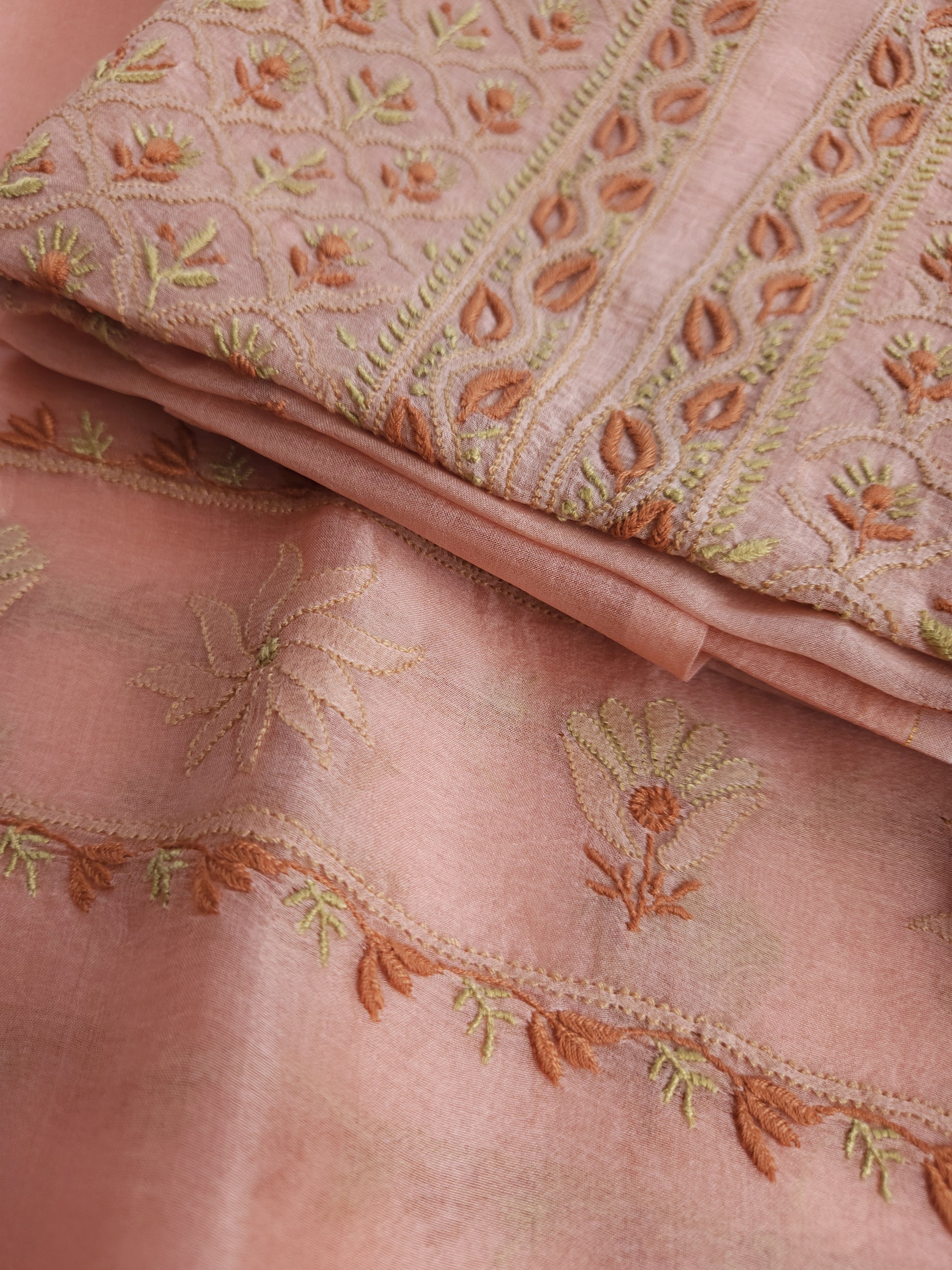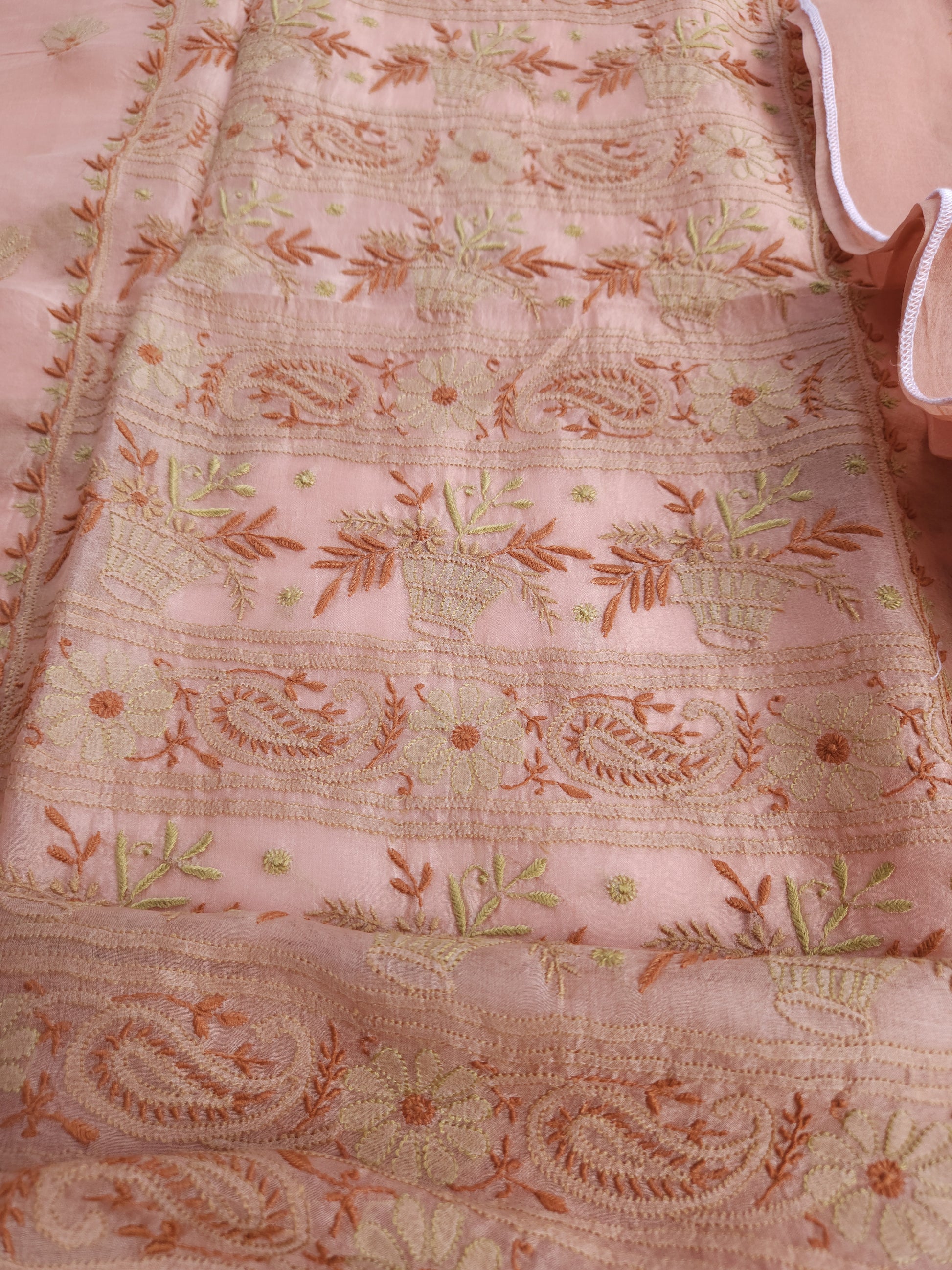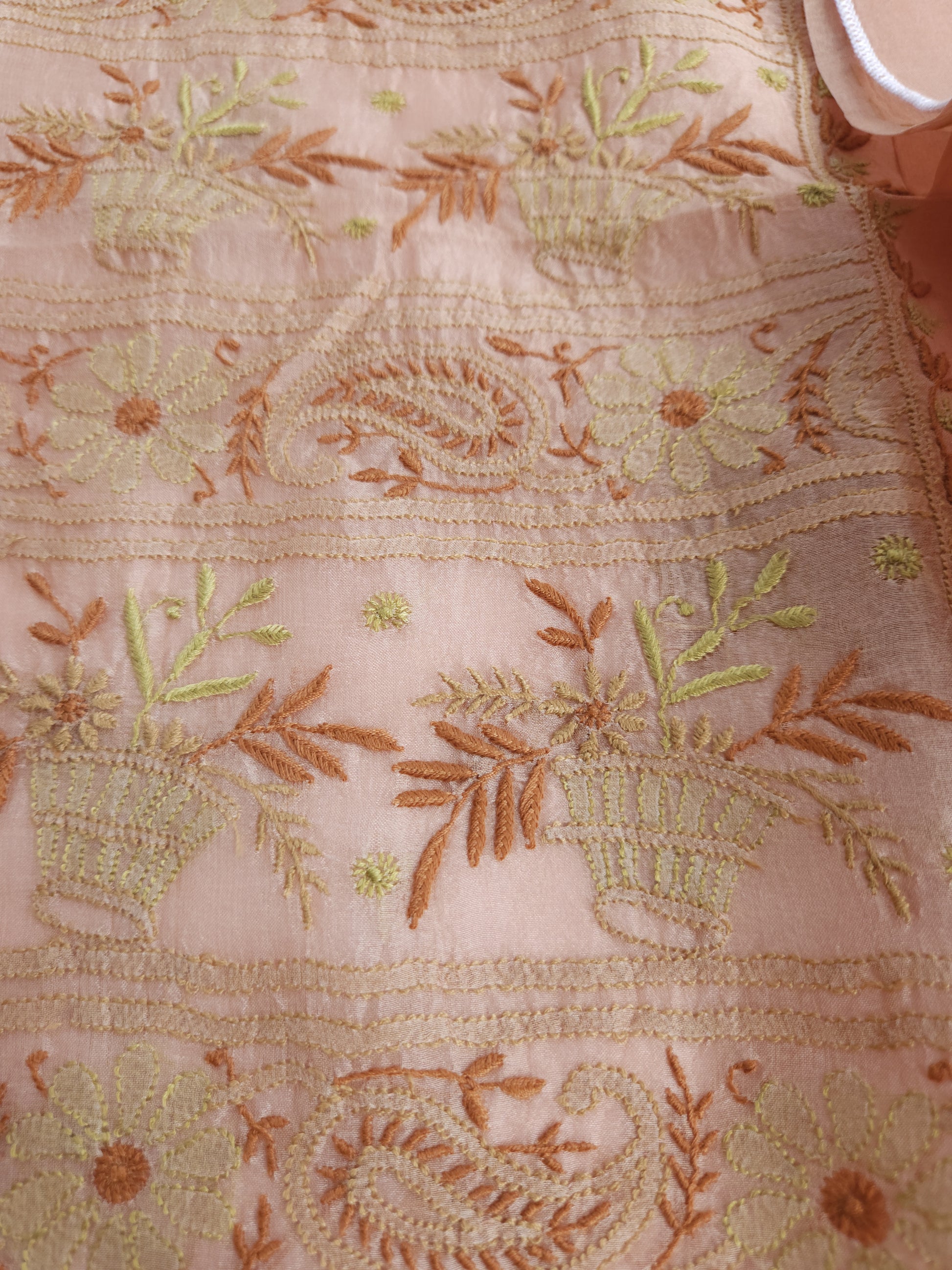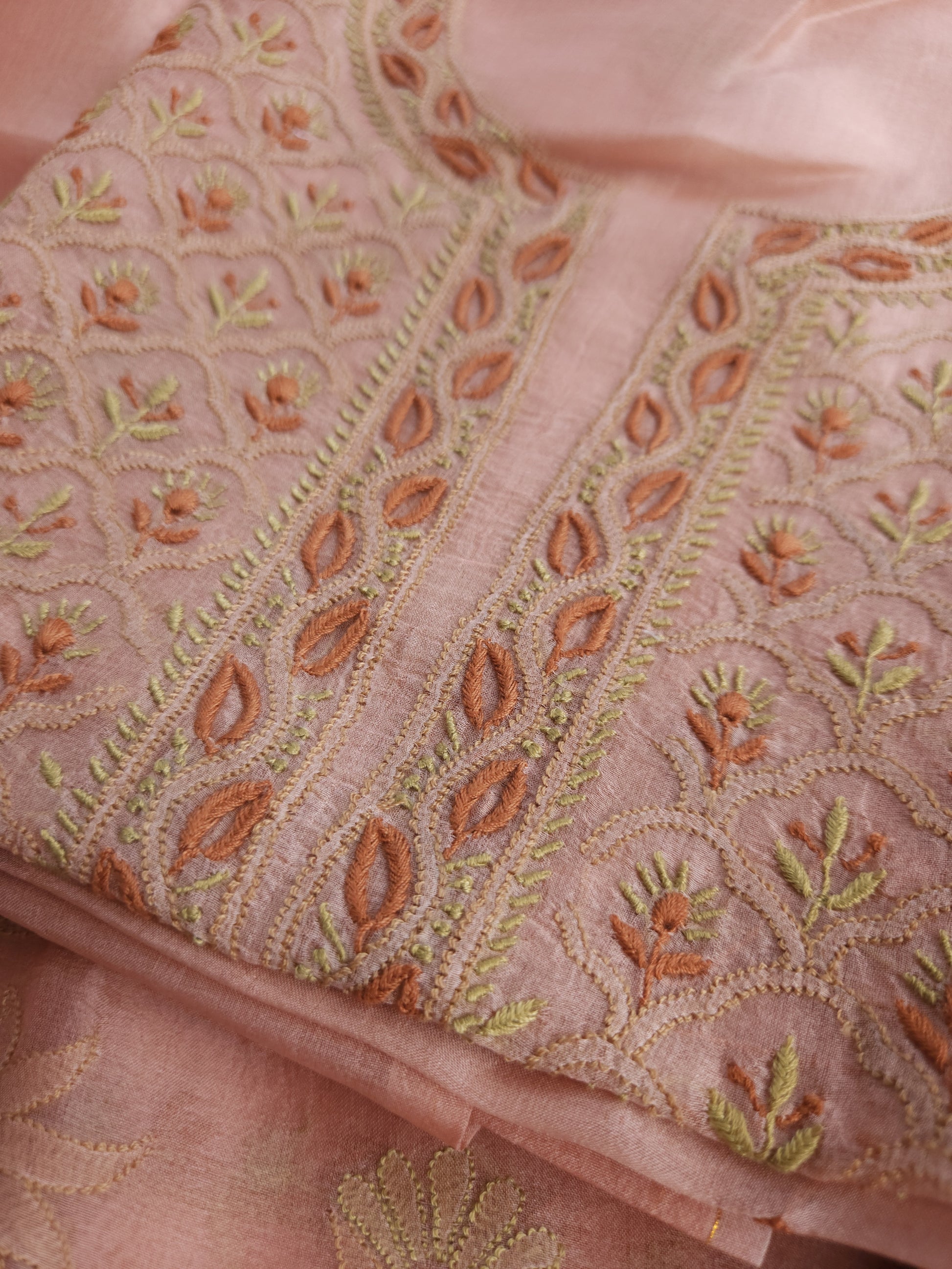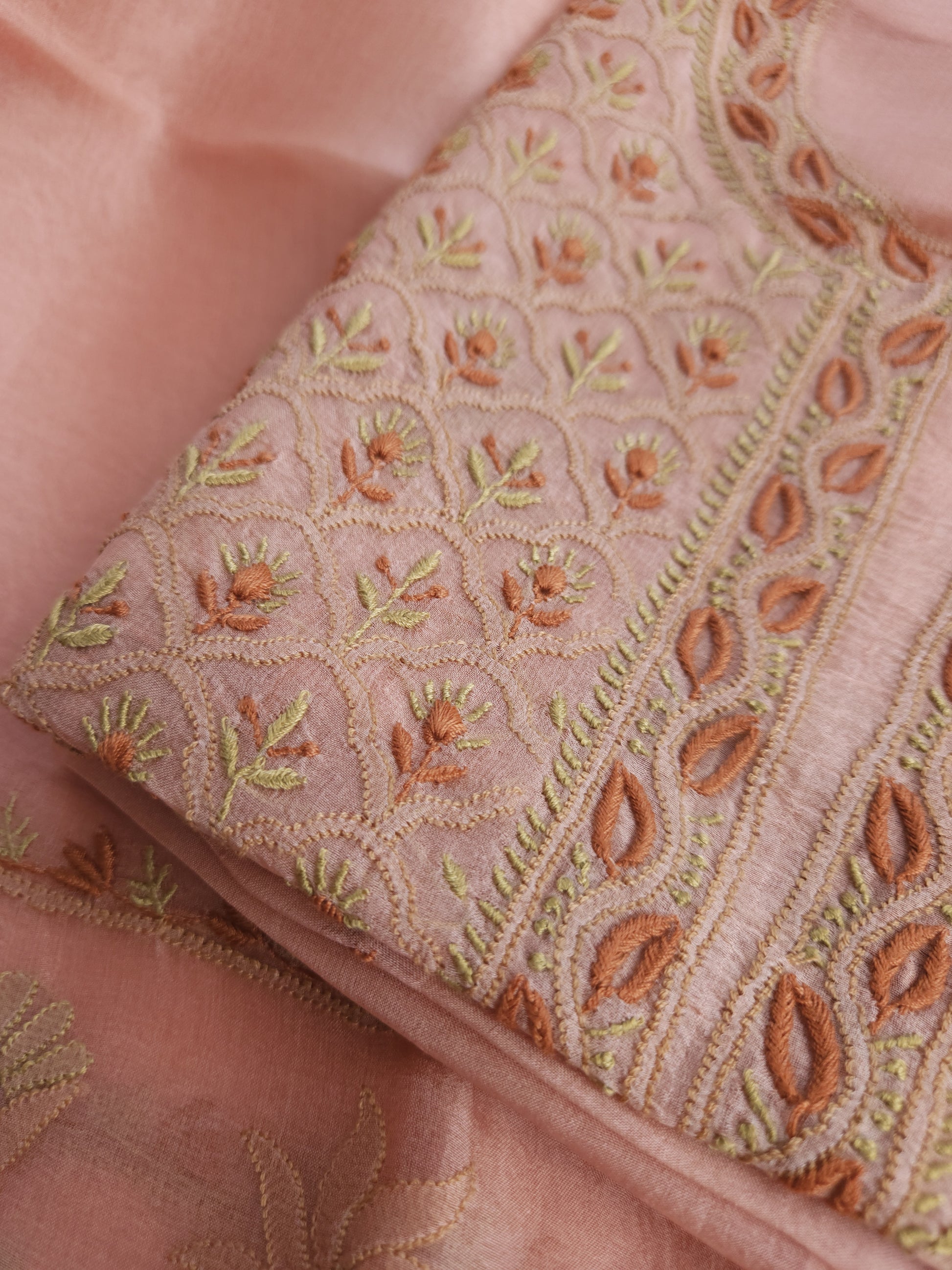 Authentic Luckhnowi Genuine 2 Taar multicoloured Thread Handwork Chikankari; with two side border booties Dupatta