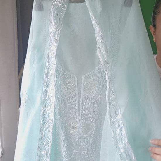 Authentic Luckhnowi Handwork Chikankari; with Heavy Embellishment of Pearls, Katdana, Sequins; with 4-sided Border Work Dupatta.