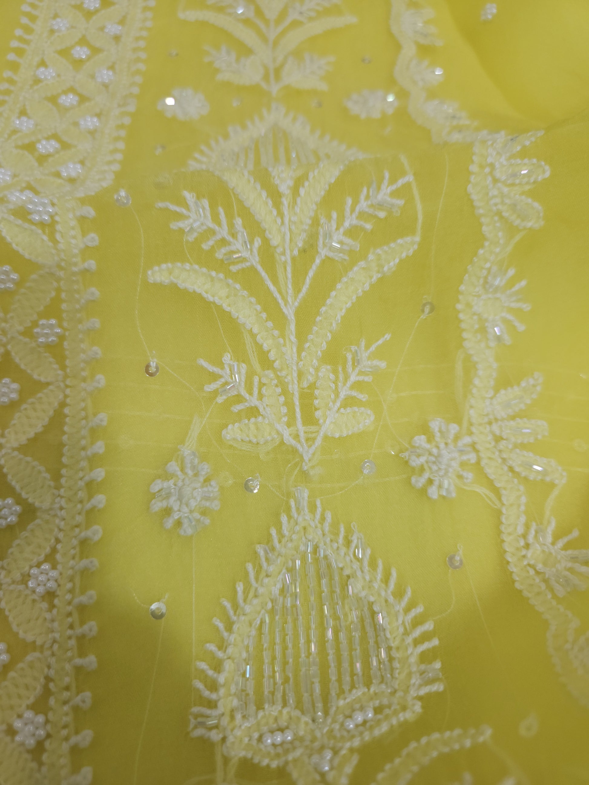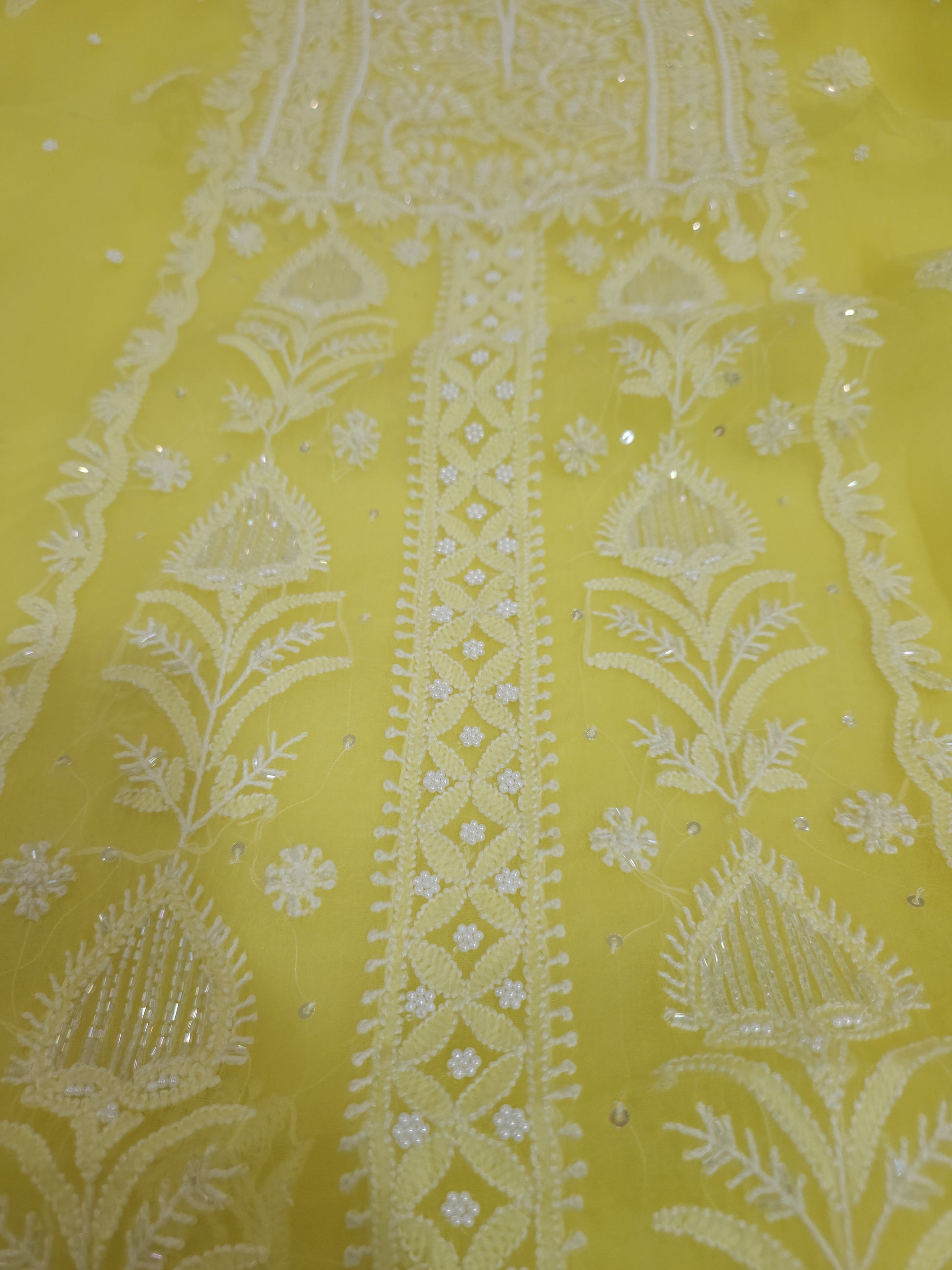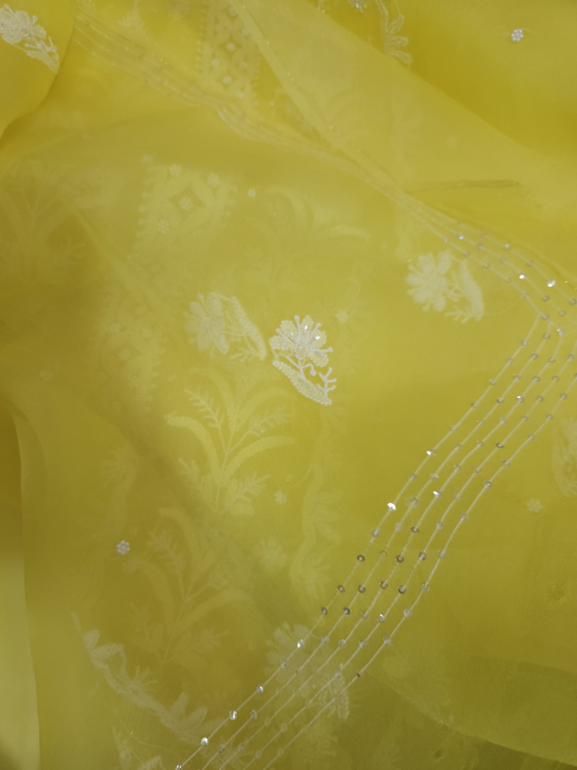 Authentic Luckhnowi Handwork Chikankari; with Heavy Embellishments of Pearls, Katdana, Sequins; with Two Side Border Bootie Dupatta.