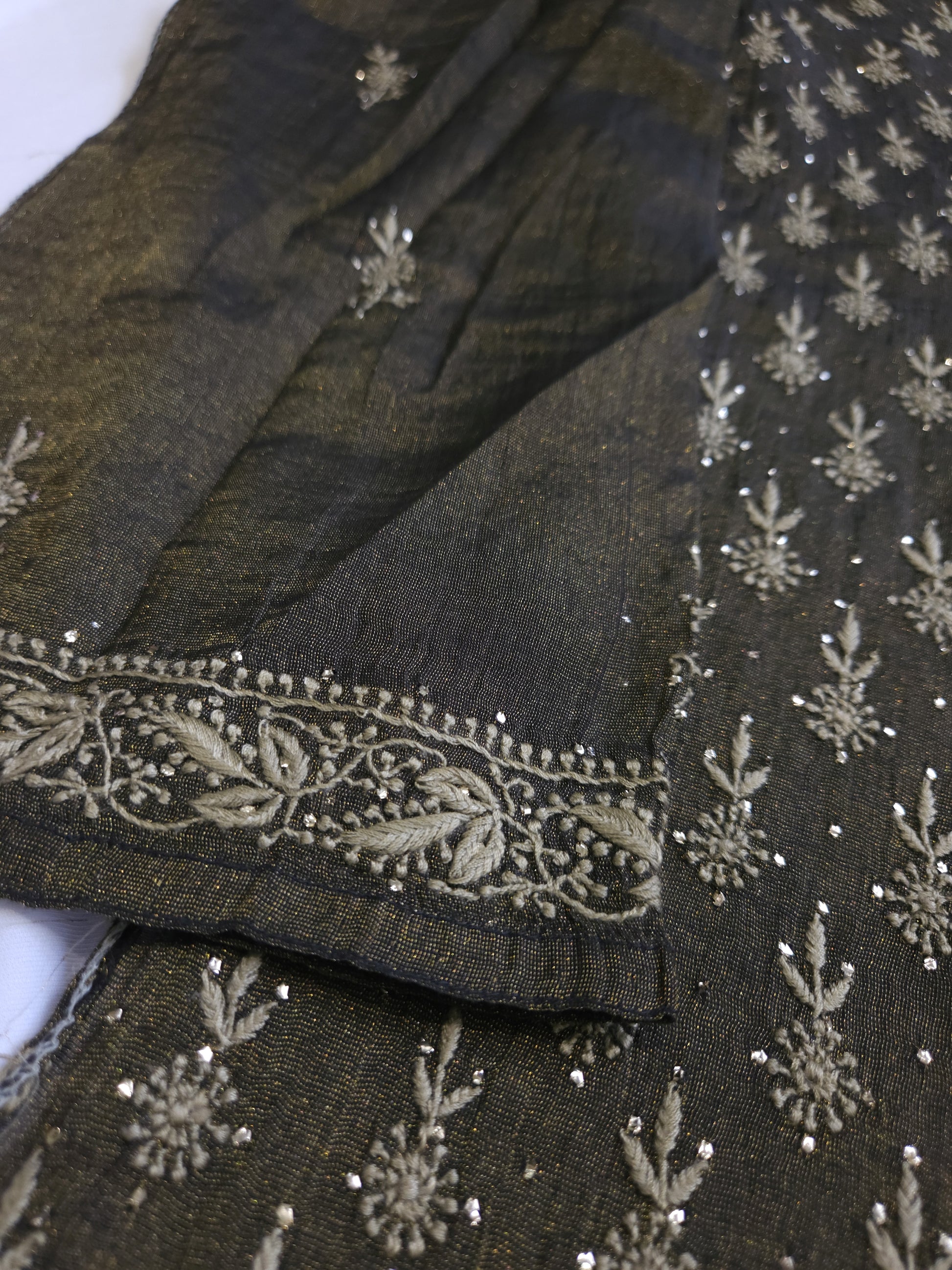 Authentic Luckhnowi Handwork Chikankari; with Heavy Embellishment of Kaamdani/Baadla; with Bootie Work Dupatta.