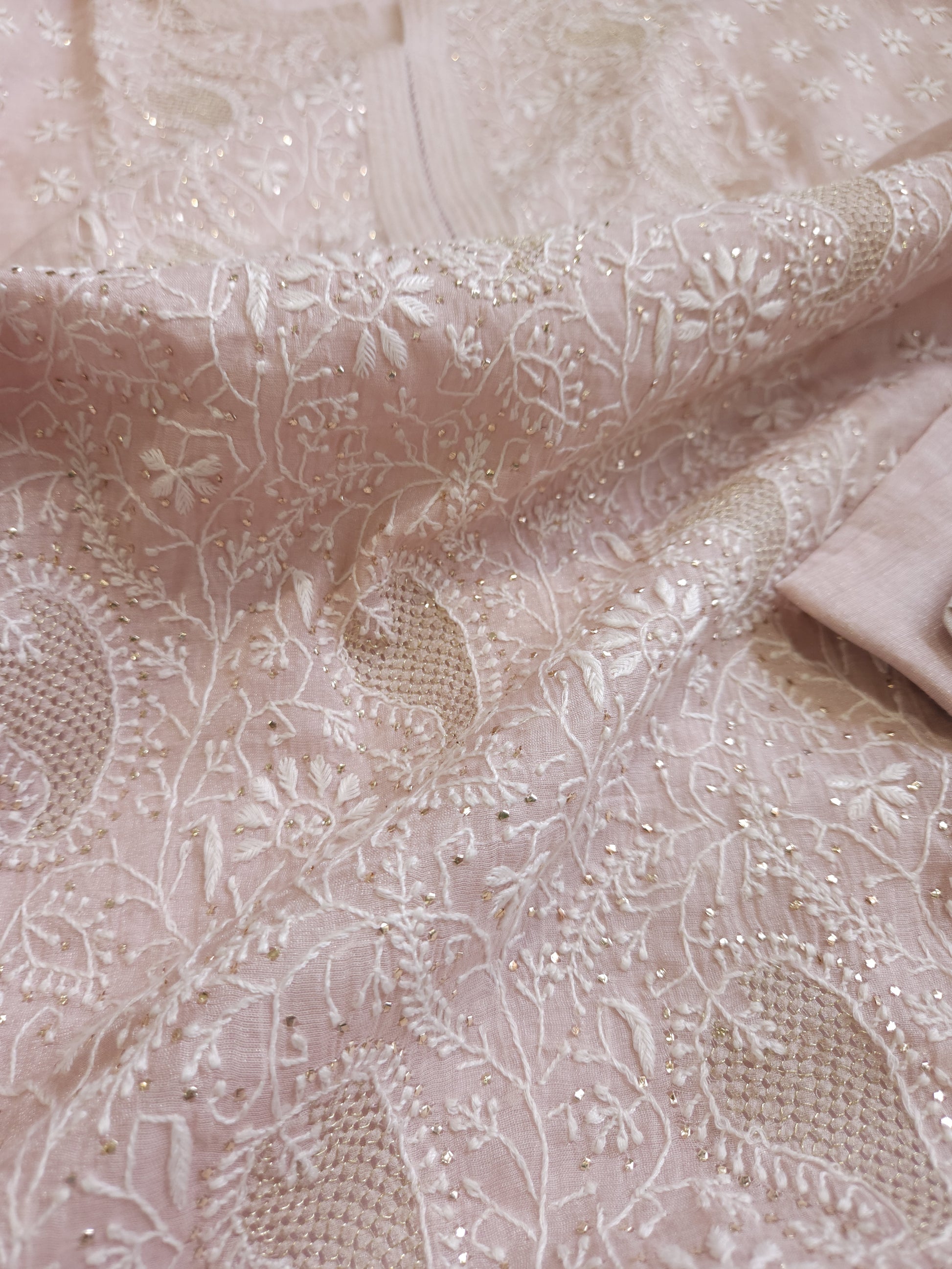 Authentic Luckhnowi Handwork Chikankari; with Heavy Embellishment of Kaamdani/Baadla; with Bootie Work Dupatta.