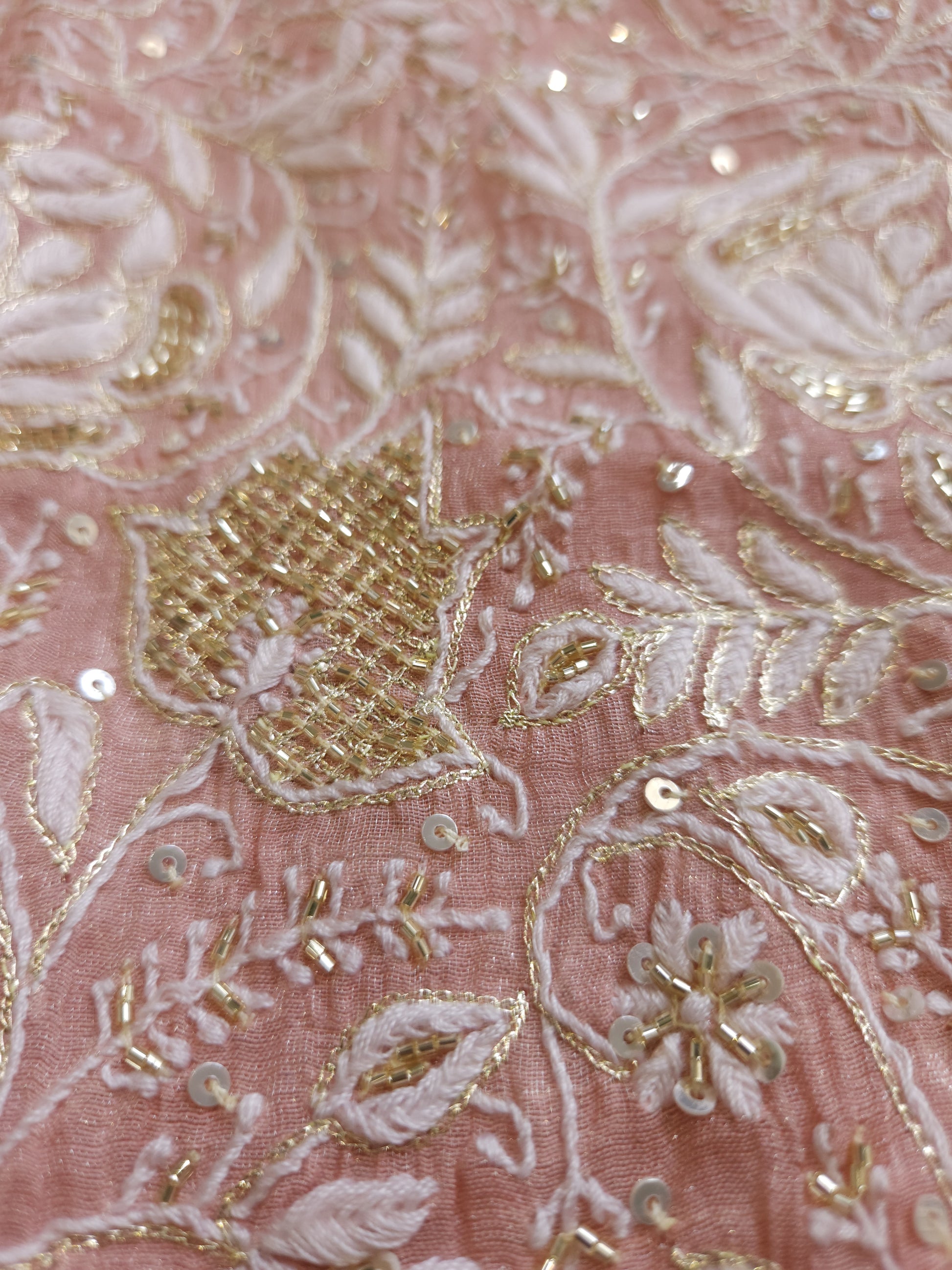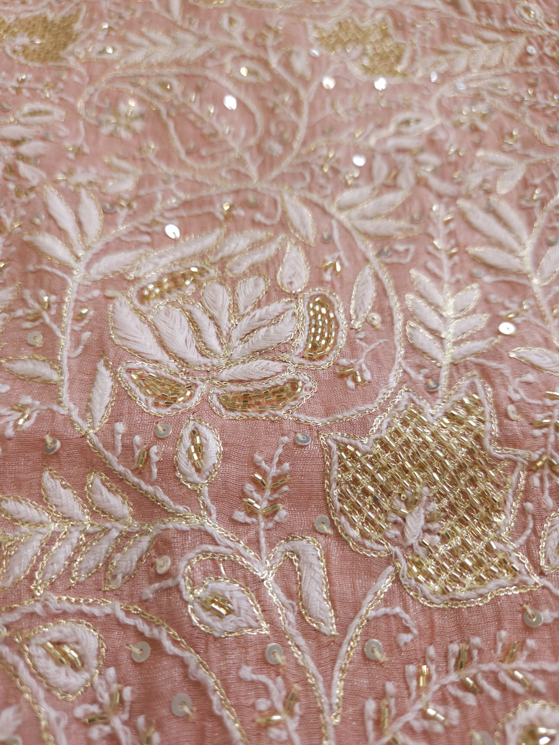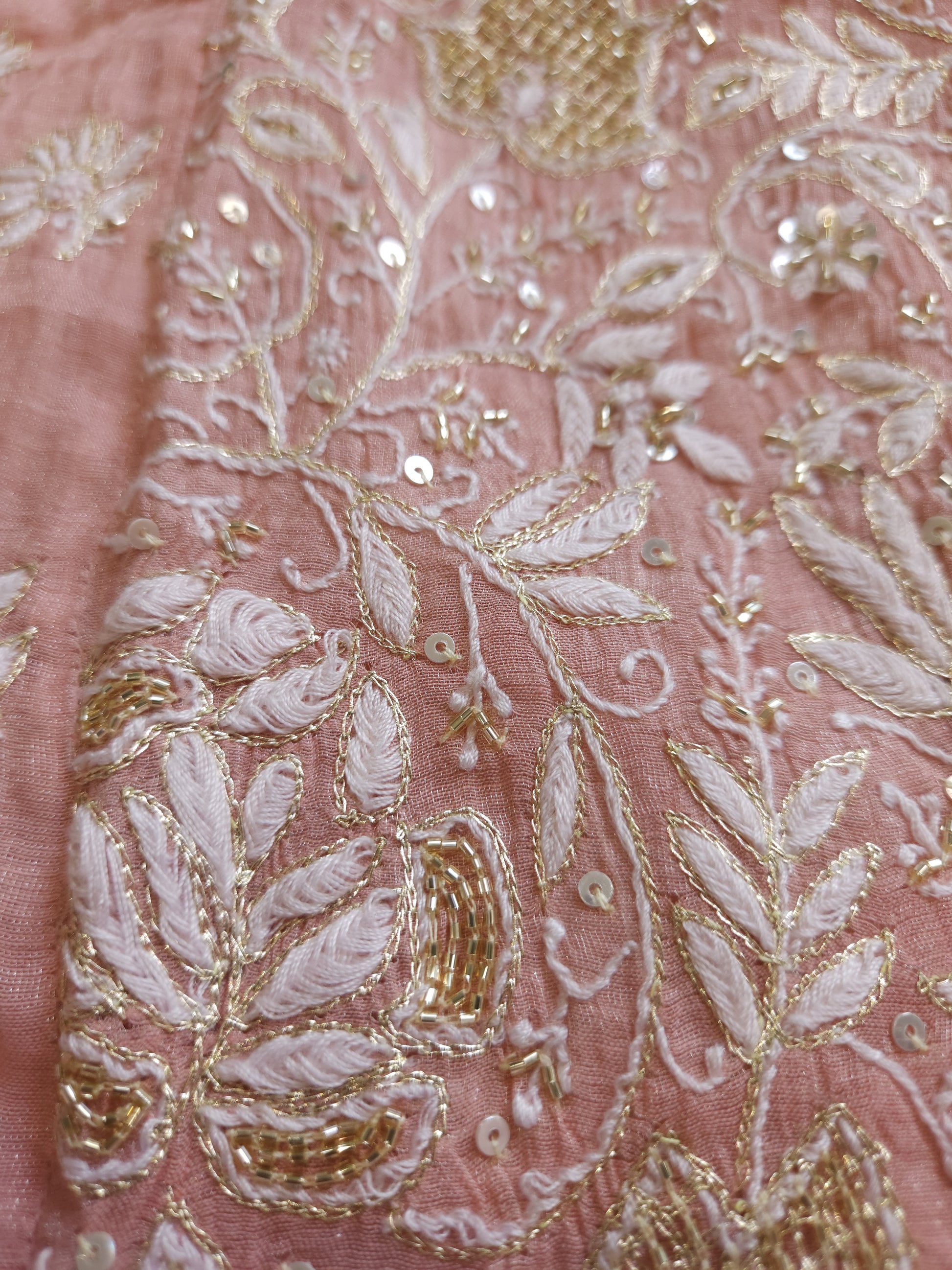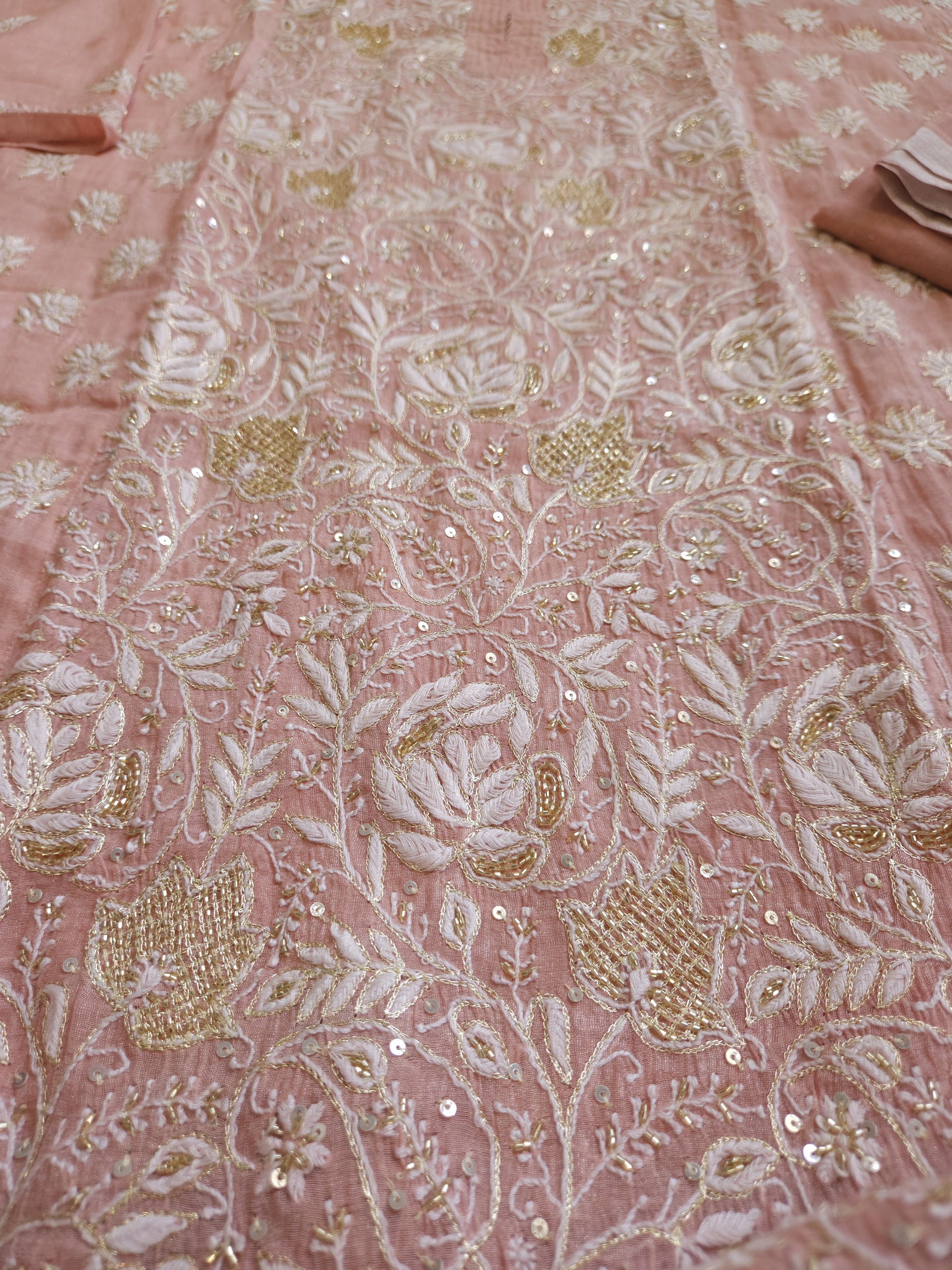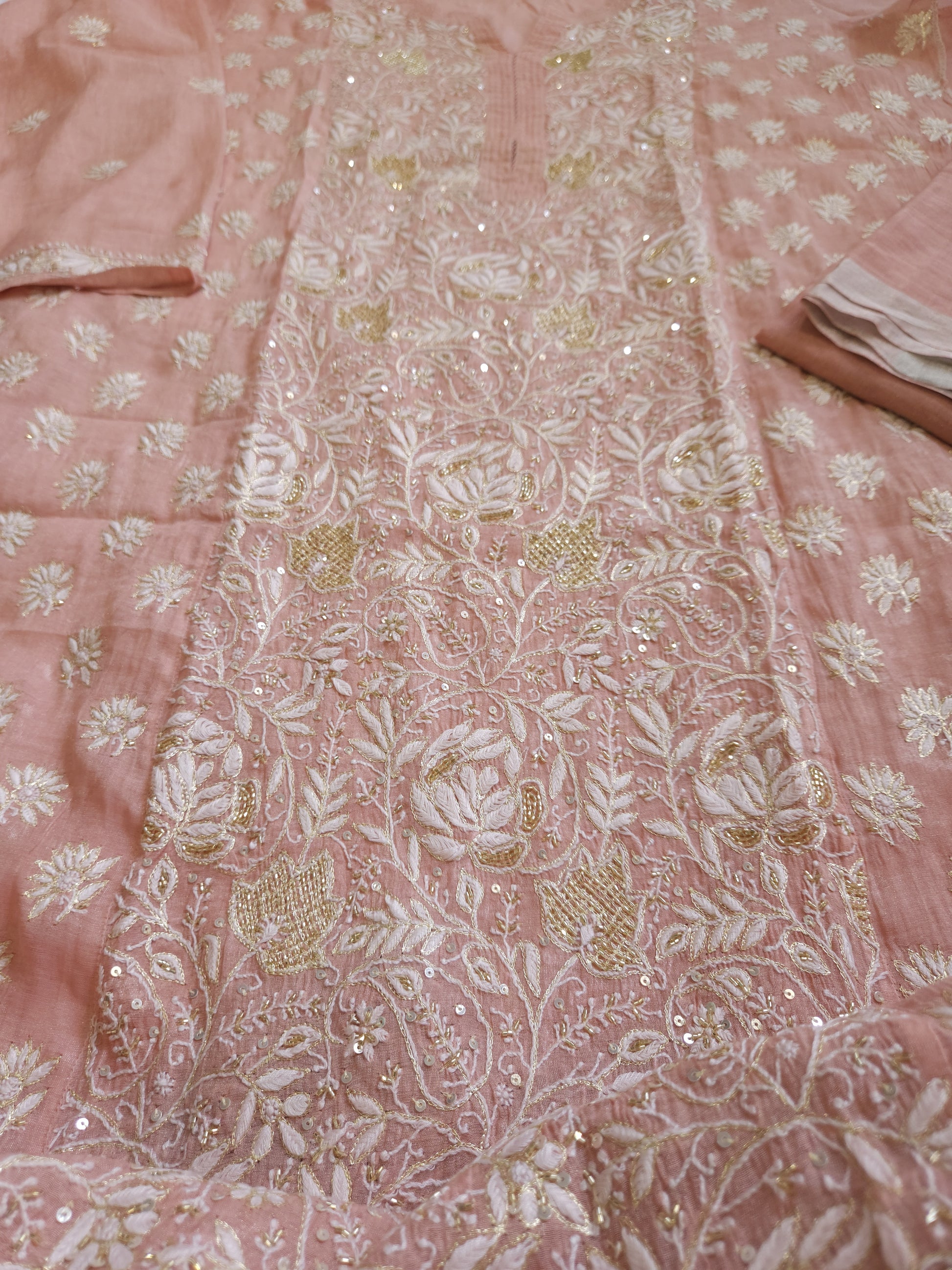 Authentic Luckhnowi Handwork Chikankari; with Heavy Embellishment of Katdana, Sequins, and Kasab; with Bootie Work Dupatta.