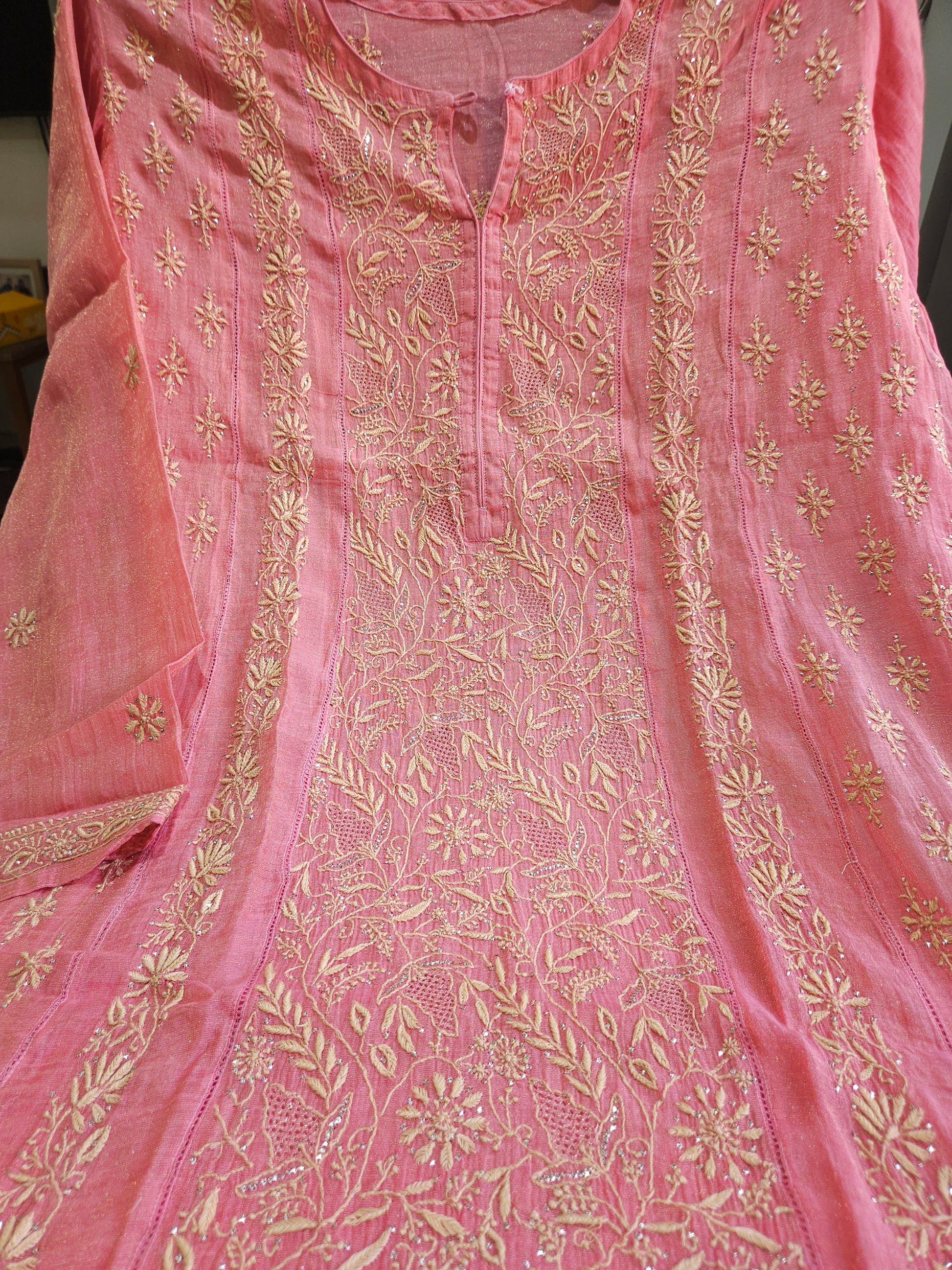Authentic Lucknowi Handwork Chikankari with Heavy Embellishments of Kasab Jaali Kaamdani Badla