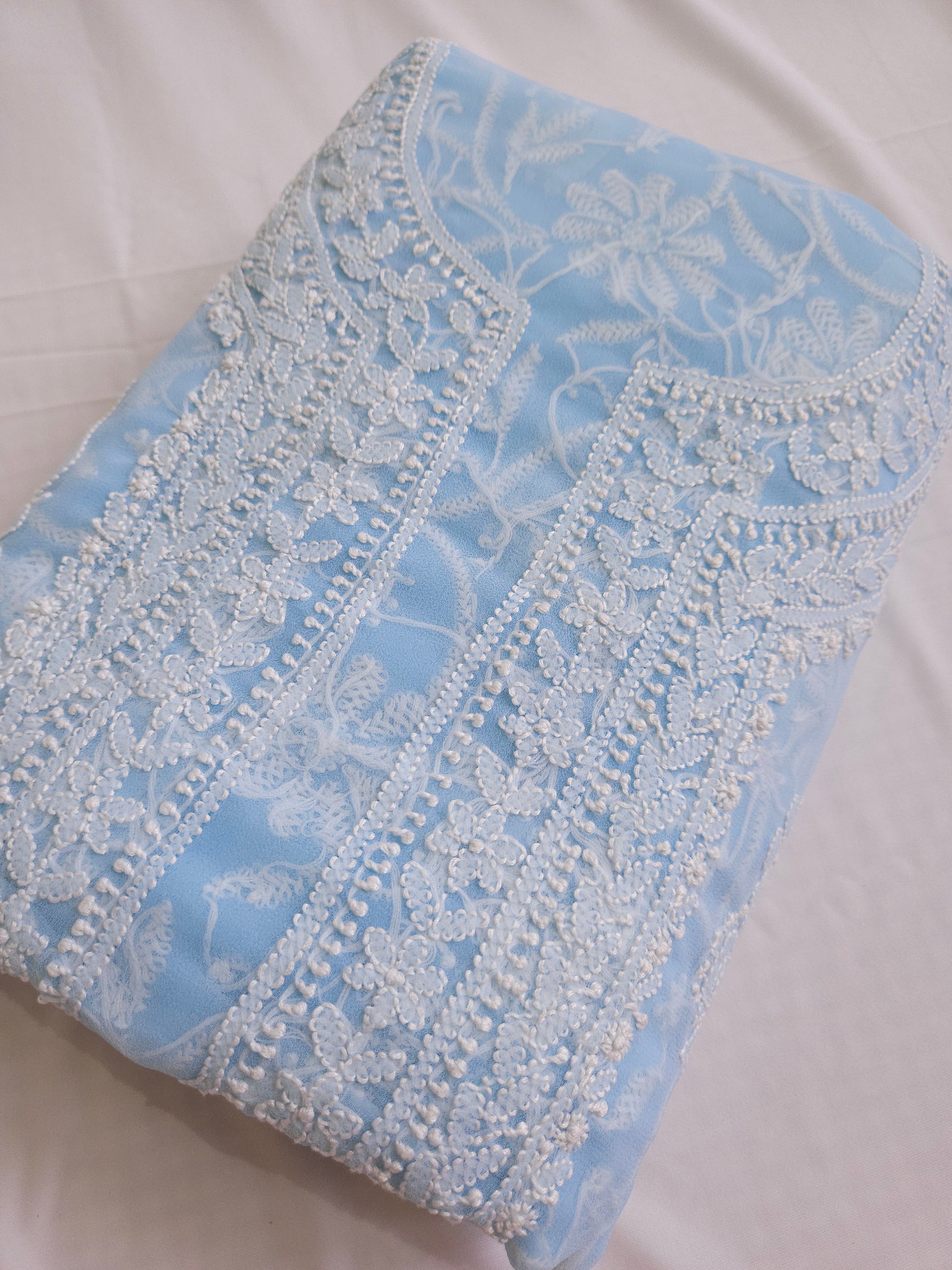 Authentic Luckhnowi Handwork Chikankari, Gala Bootie Kurta, with Full Jaal Work Dupatta, with Border Bootie Work on Sleeves and Salwar.