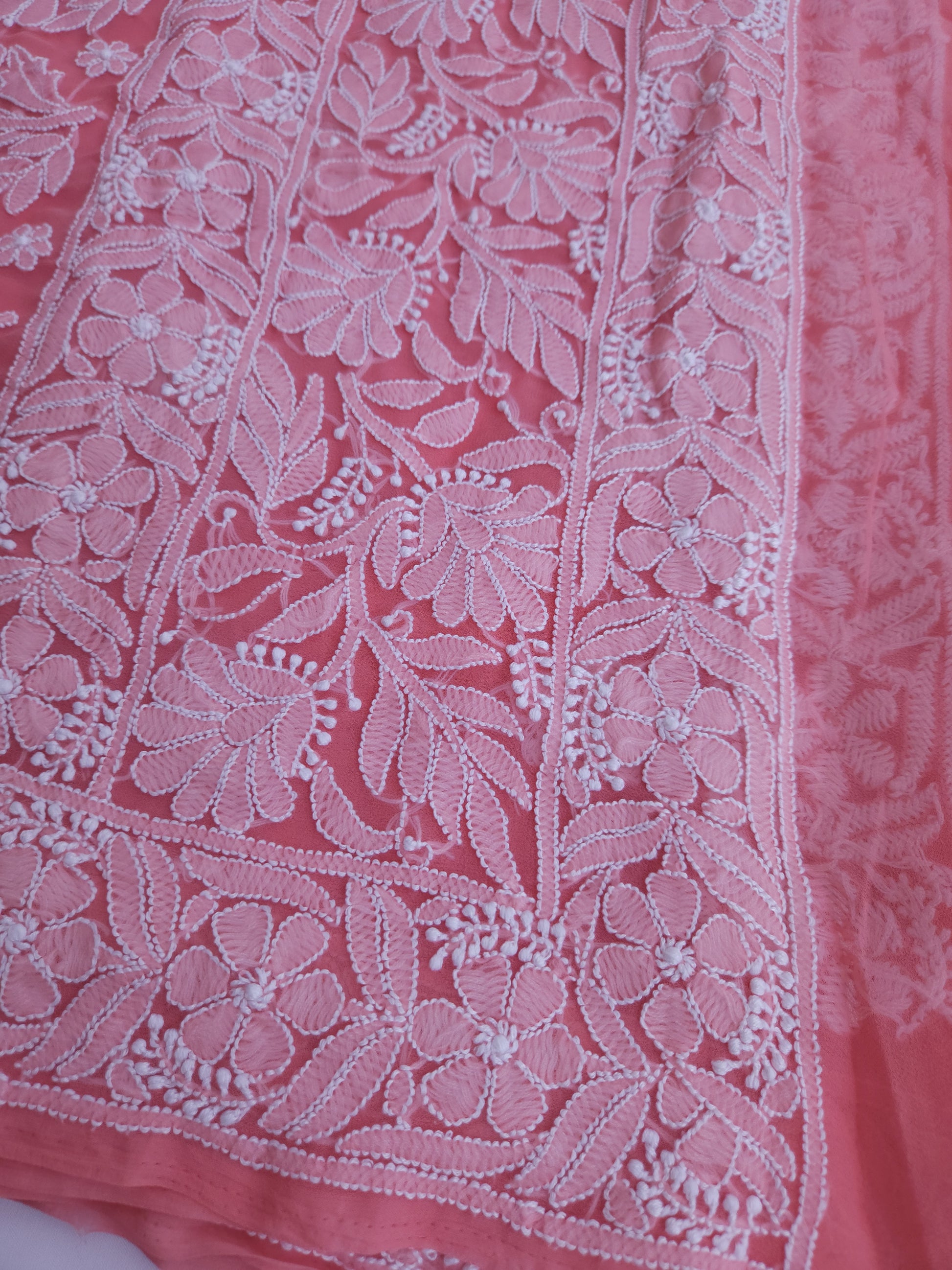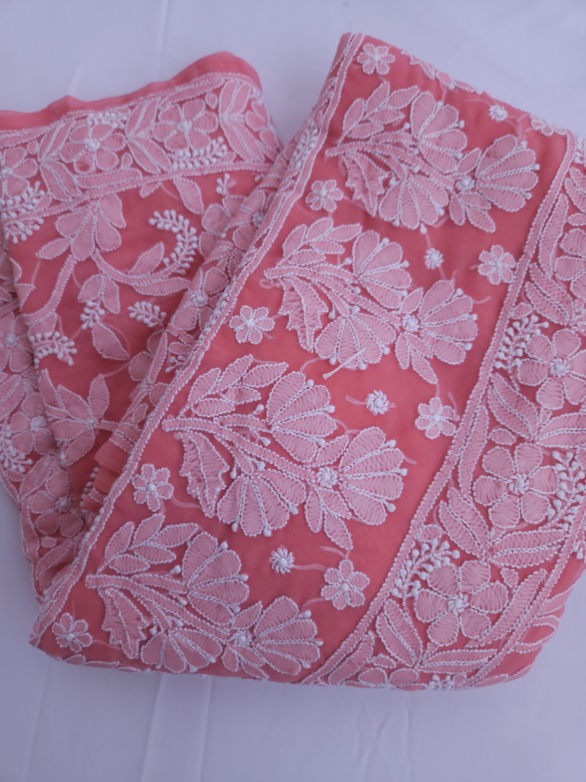 Authentic Lucknowi Handwork Chikankari, Half Jaal Saree with Unstitched Blouse Fabric