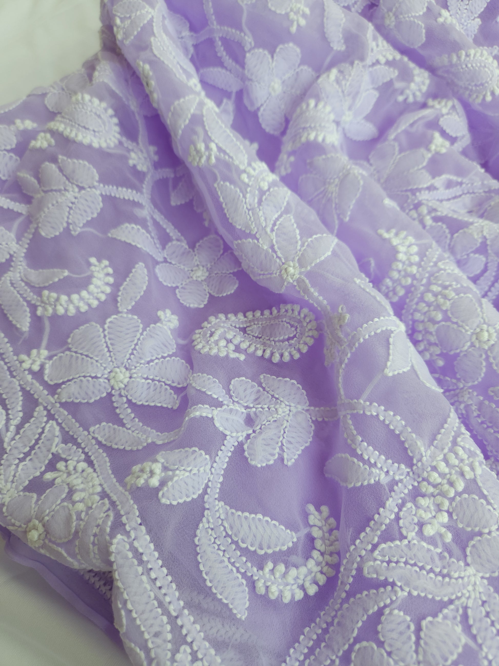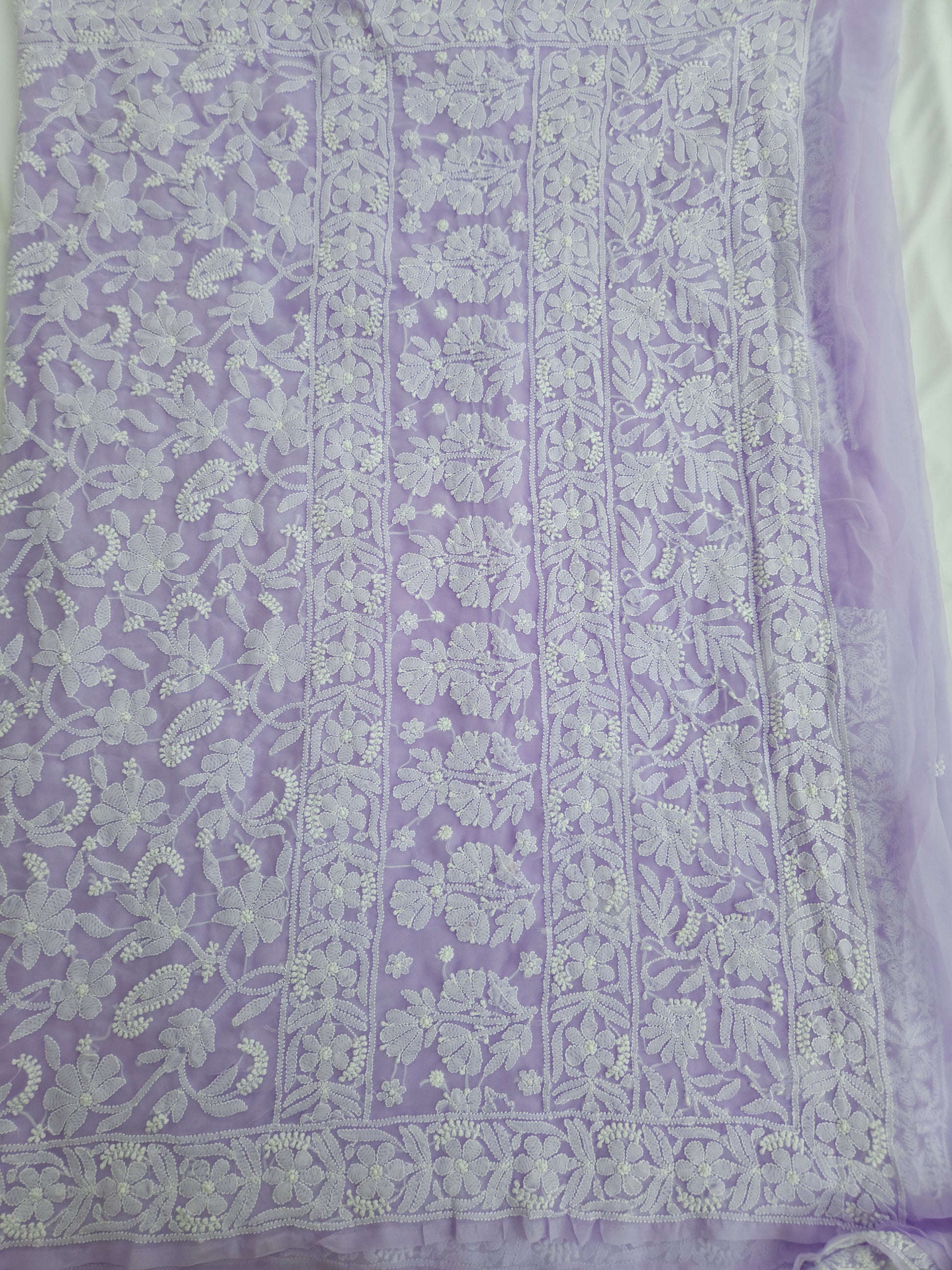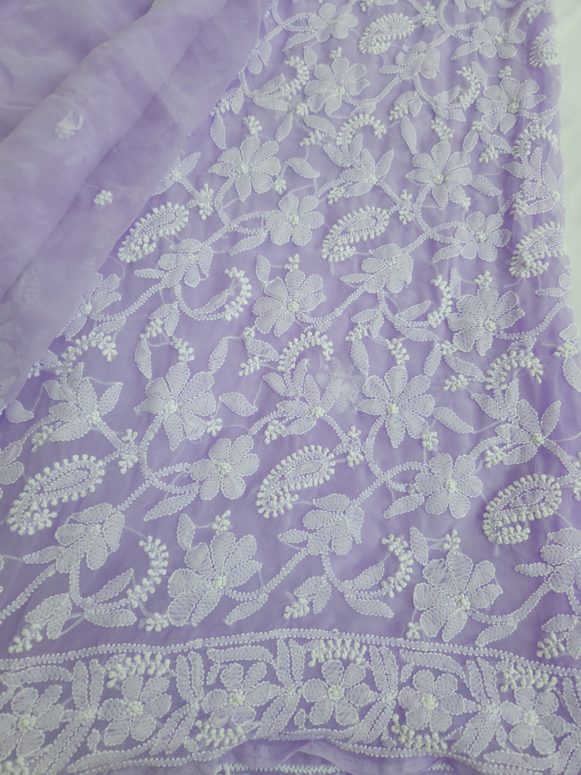 Authentic Lucknowi Handwork Chikankari, Half Jaal Saree with Unstitched Blouse Fabric