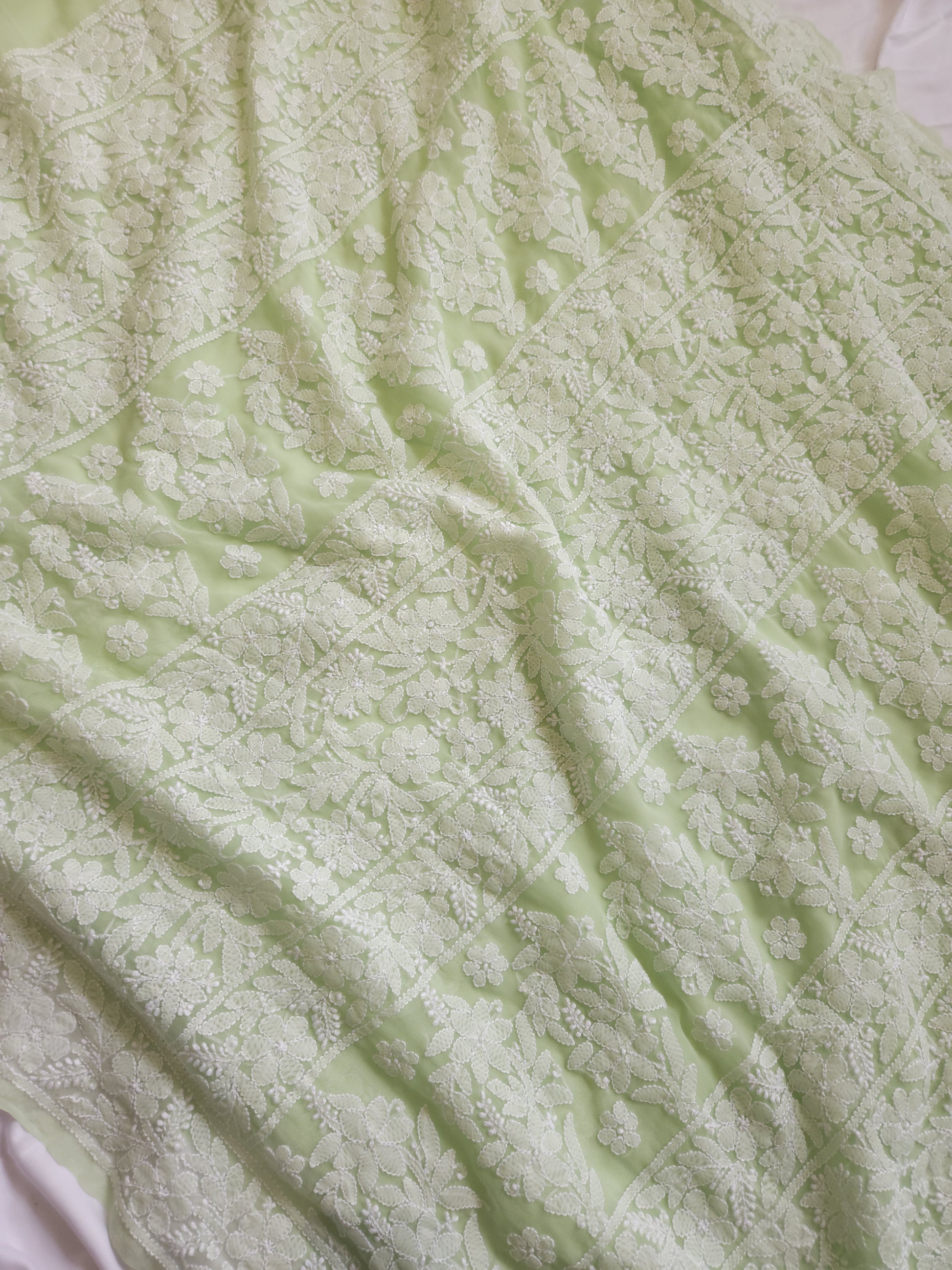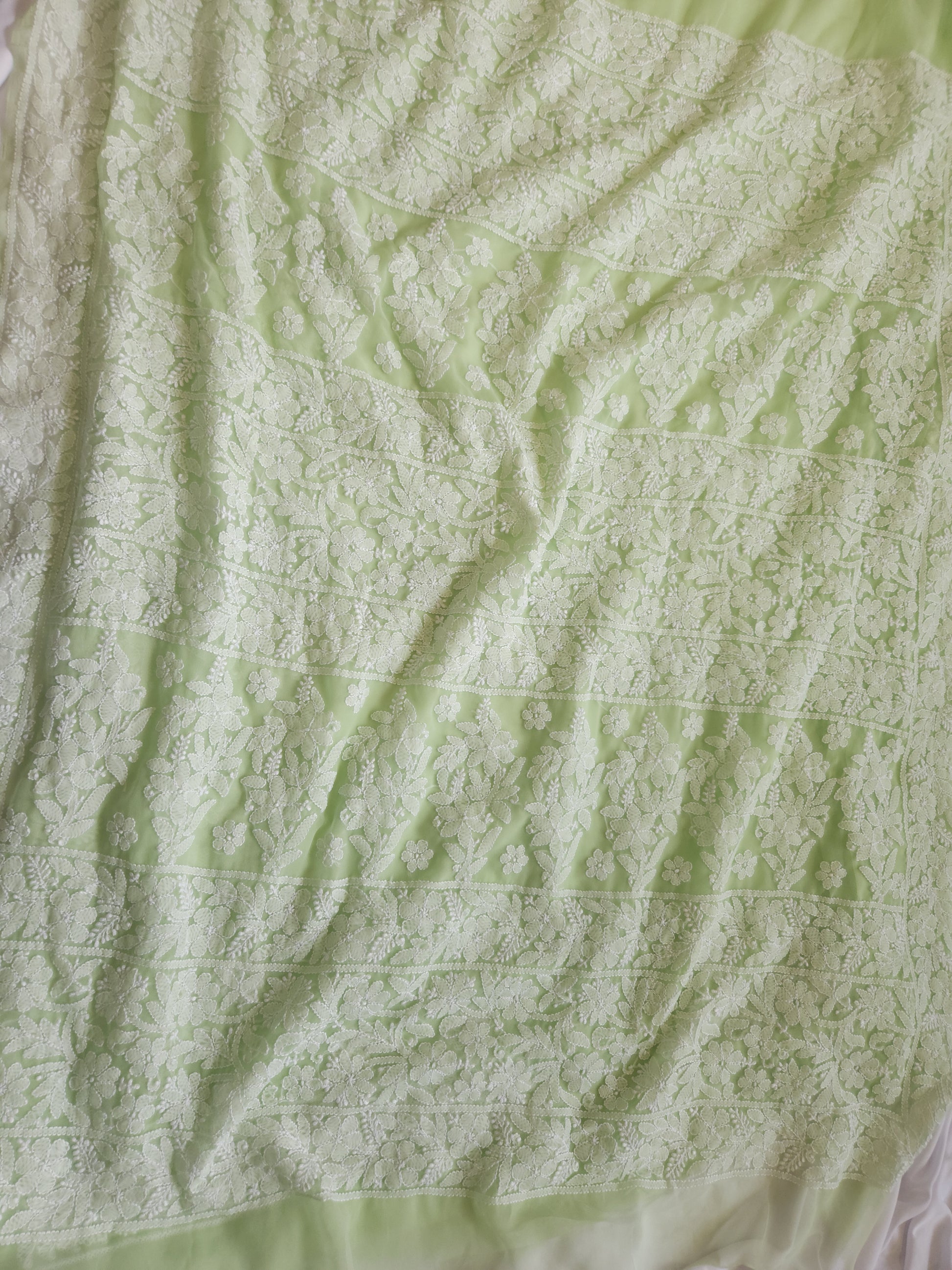 Authentic Luckhnowi Handwork Chikankari Saree; with Heavy Border Work on Pallu and Bootie All Over; with Blouse Fabric.