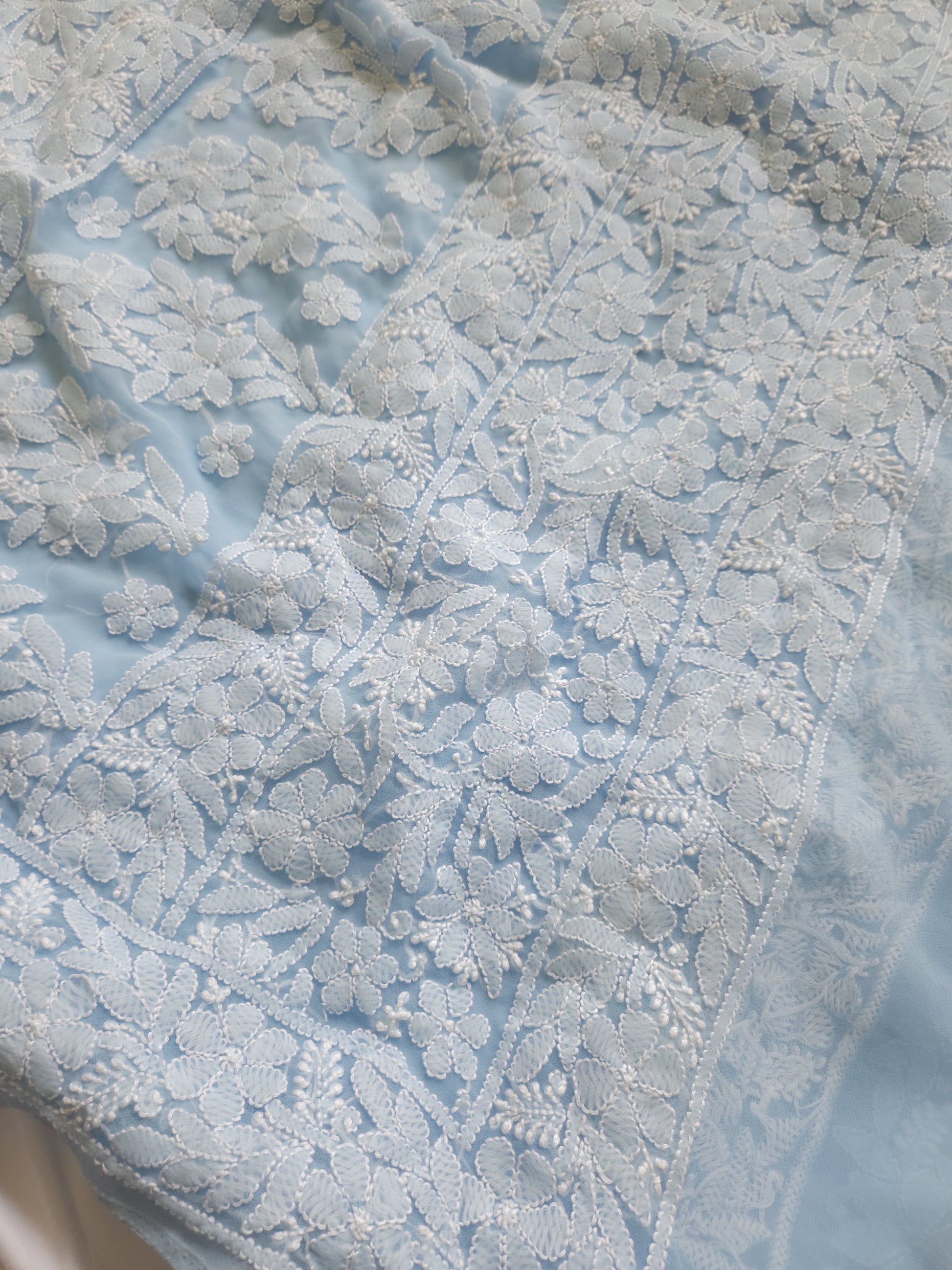 Authentic Luckhnowi Handwork Chikankari Saree; with Heavy Border Work on Pallu and Bootie All Over; with Blouse Fabric.