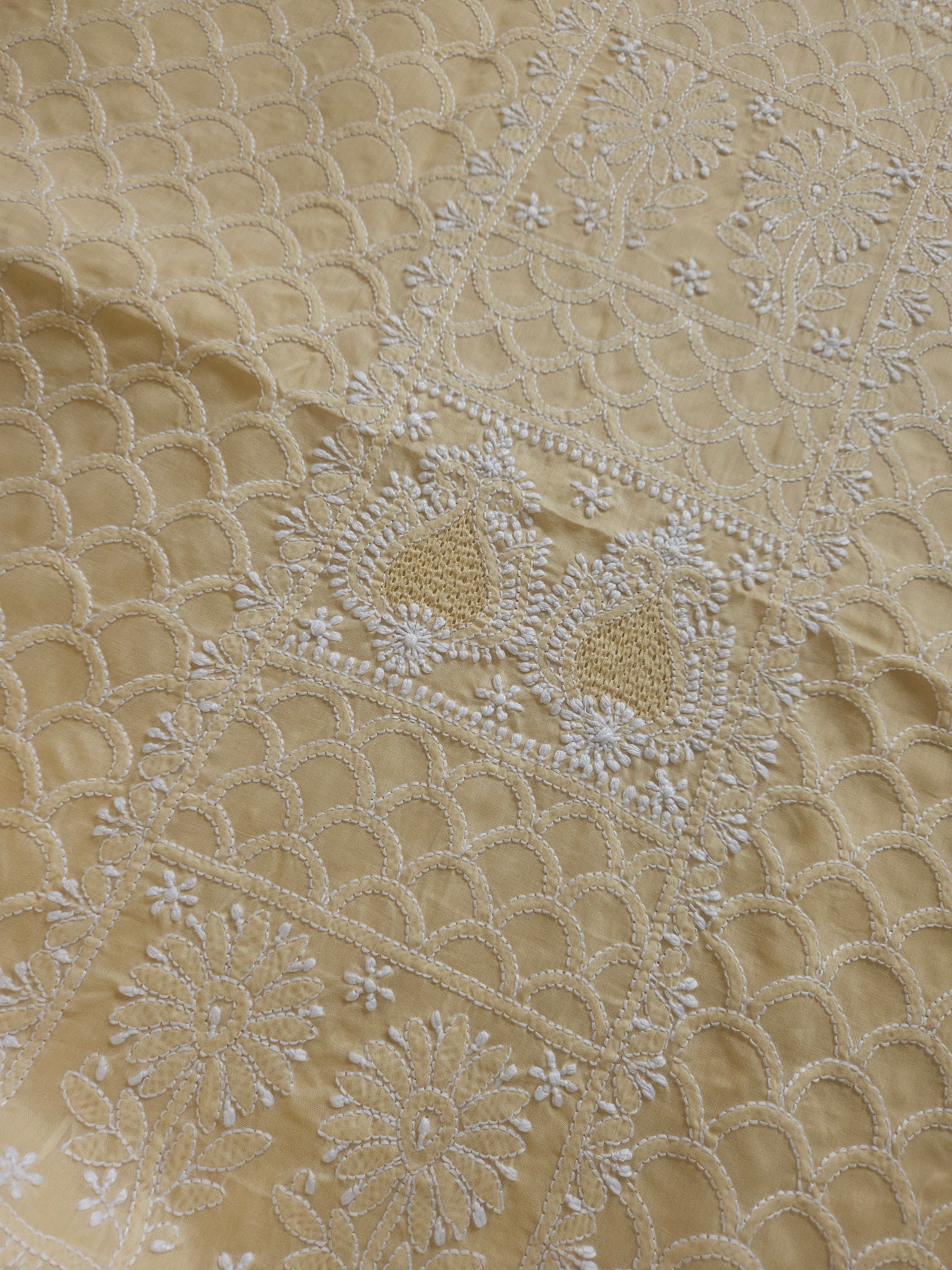 Authentic Lucknowi Handwork Chikankari, Full Jaal Kurta with Jaali Handwork, with Border Work on Sleeves and Salwar, with Chiffon Dupatta.