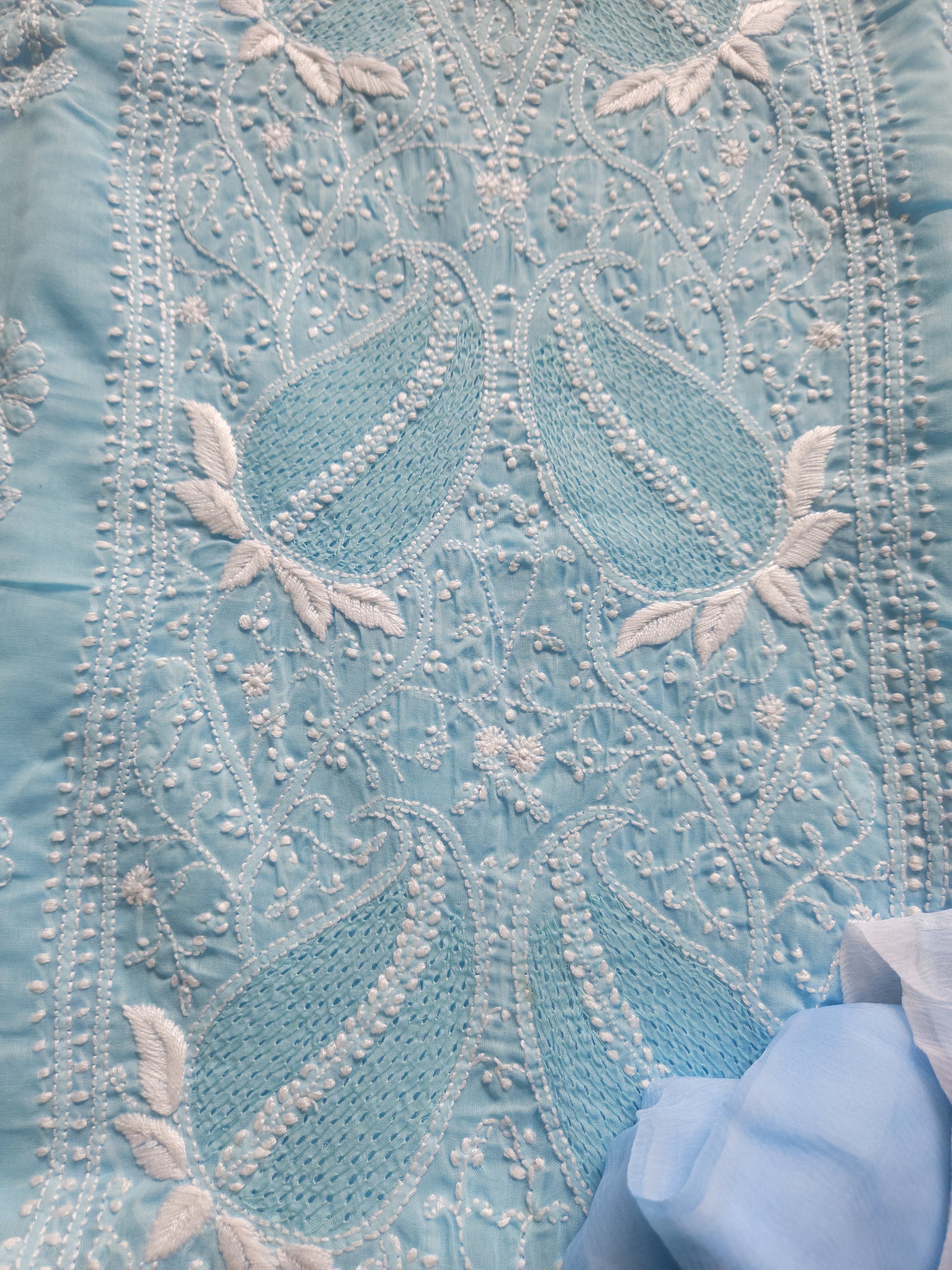 Authentic Lucknowi Handwork Chikankari, Front Panel Jaal Kurta with Jaali Handwork, with Border Work on Sleeves and Salwar, with Chiffon Dupatta.