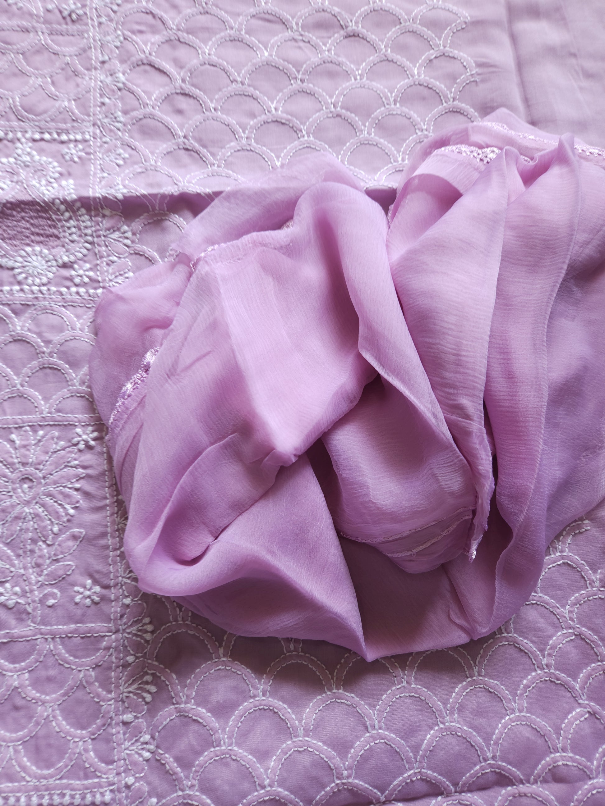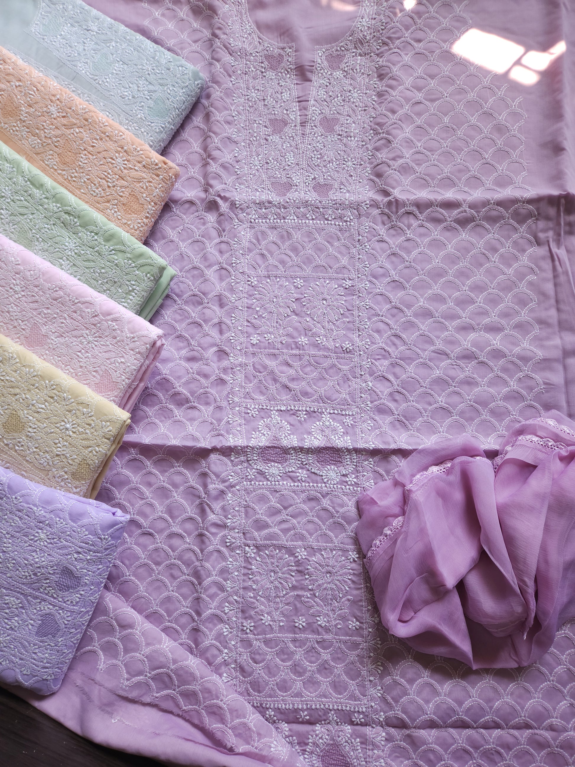 Authentic Lucknowi Handwork Chikankari, Full Jaal Kurta with Jaali Handwork, with Border Work on Sleeves and Salwar, with Chiffon Dupatta.