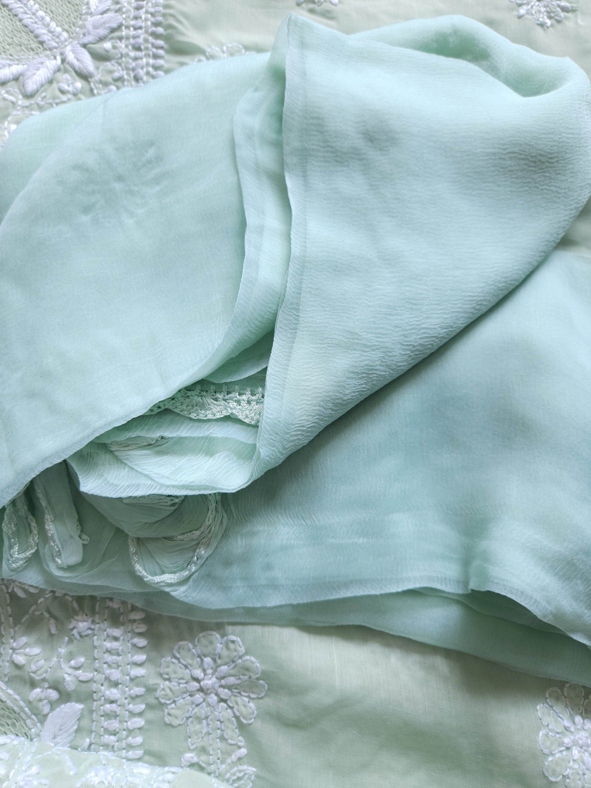 Authentic Lucknowi Handwork Chikankari, Front Panel Jaal Kurta with Jaali Handwork, with Border Work on Sleeves and Salwar, with Chiffon Dupatta.