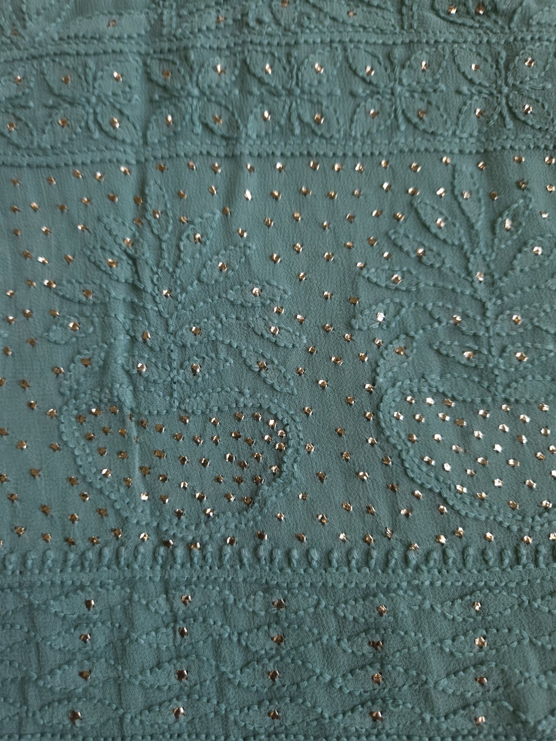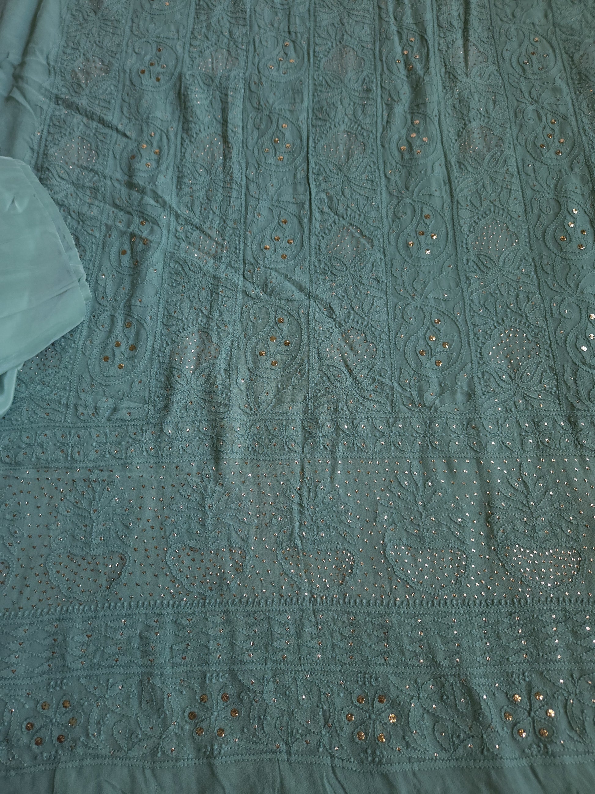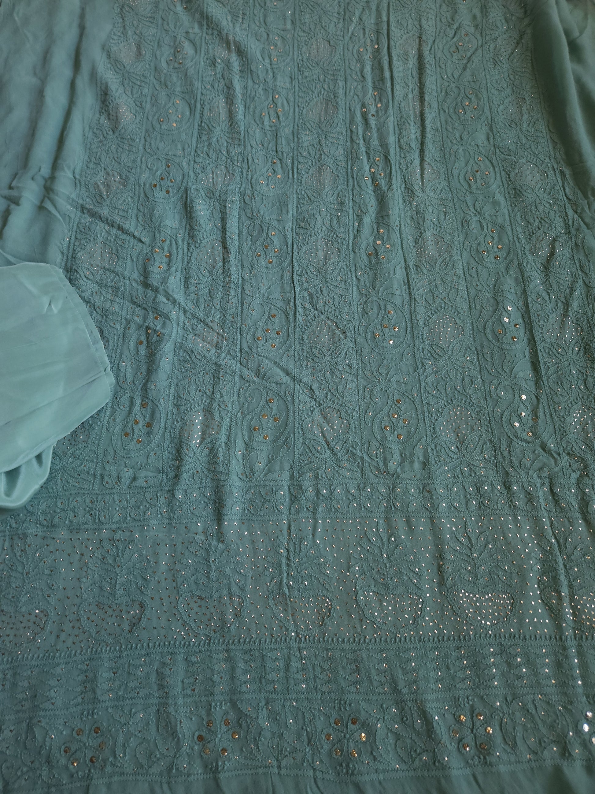 Authentic Lucknowi Handwork Chikankari and Kaamdani/Badla Handwork, Front Full Jaal Kurta with Border Bootie Work on Sleeves, with Semi Crepe Salwar Fabric, with Viscose Georgette Dupatta.