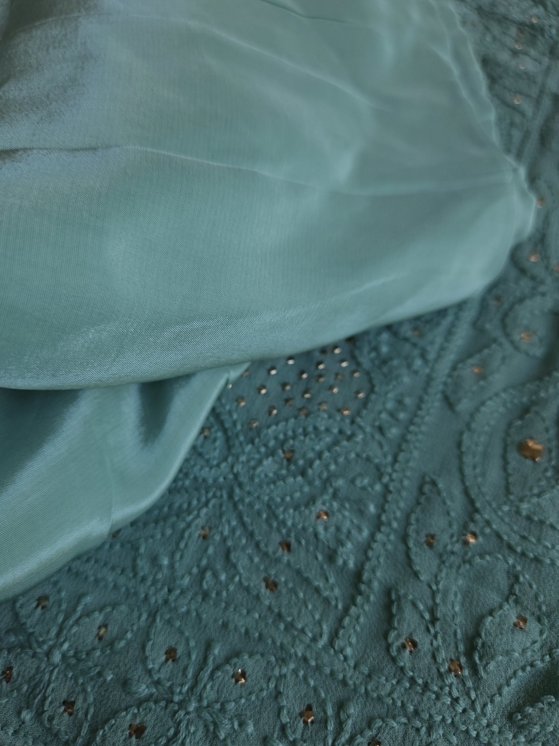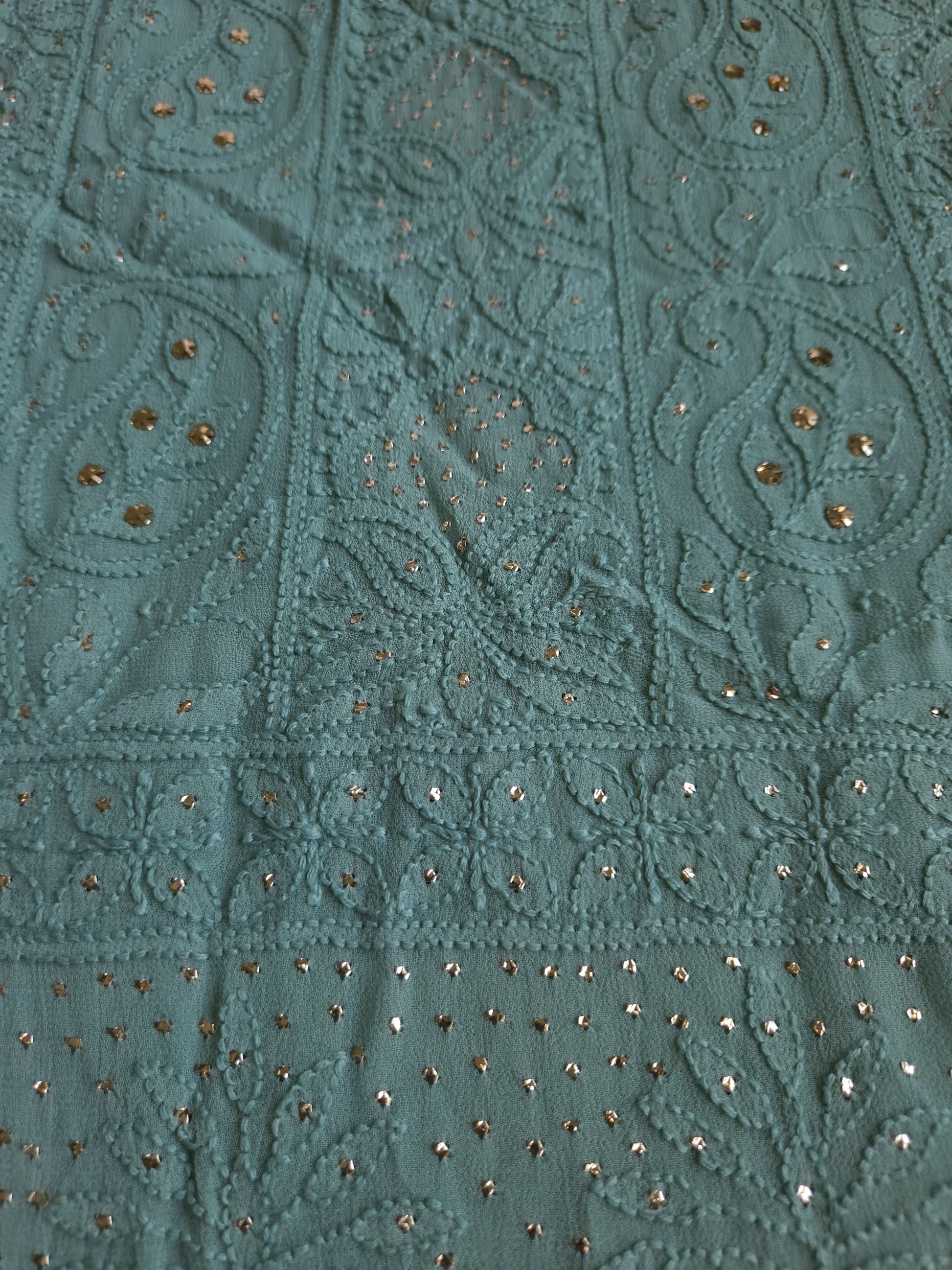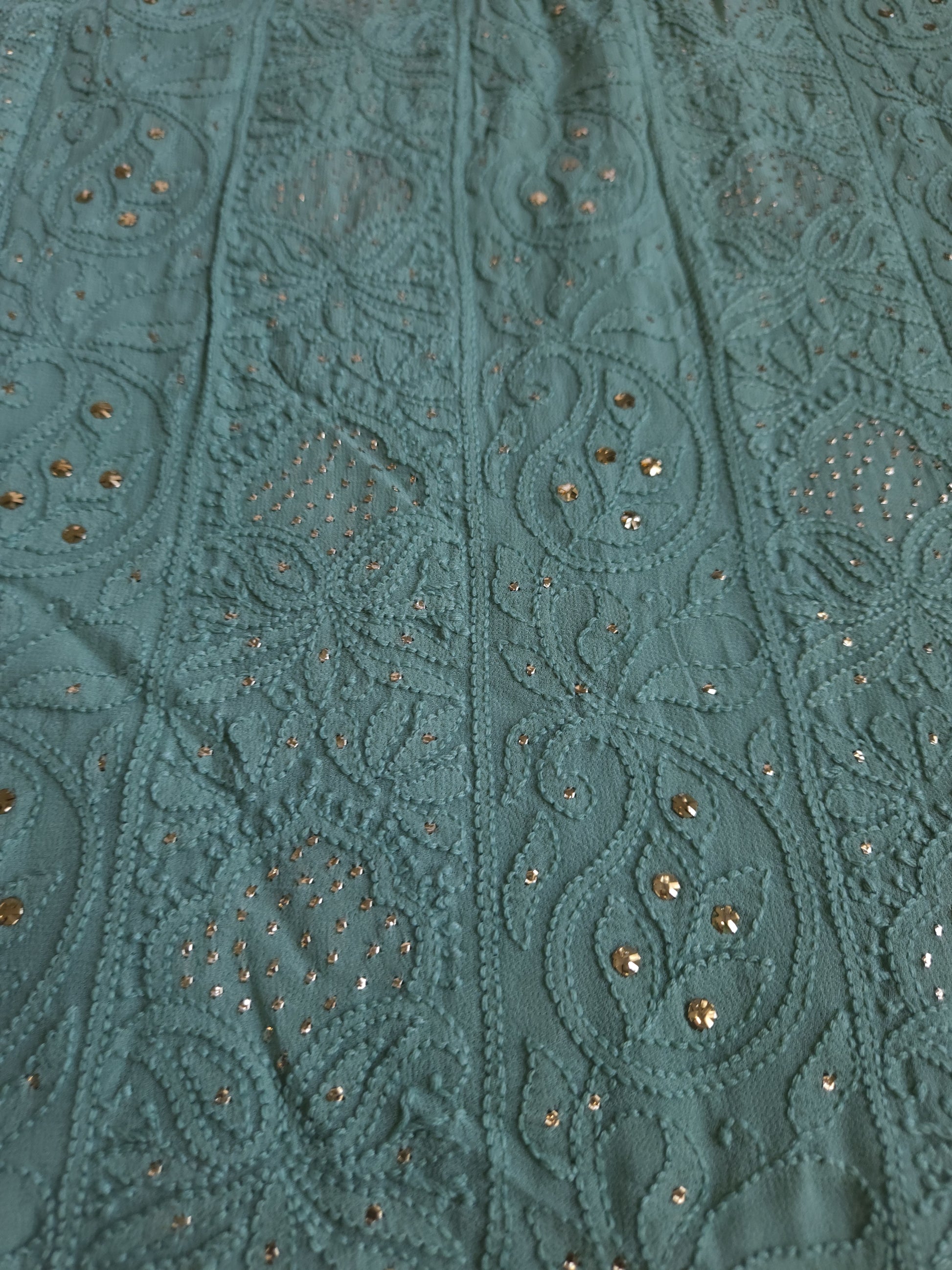 Authentic Lucknowi Handwork Chikankari and Kaamdani/Badla Handwork, Front Full Jaal Kurta with Border Bootie Work on Sleeves, with Semi Crepe Salwar Fabric, with Viscose Georgette Dupatta.