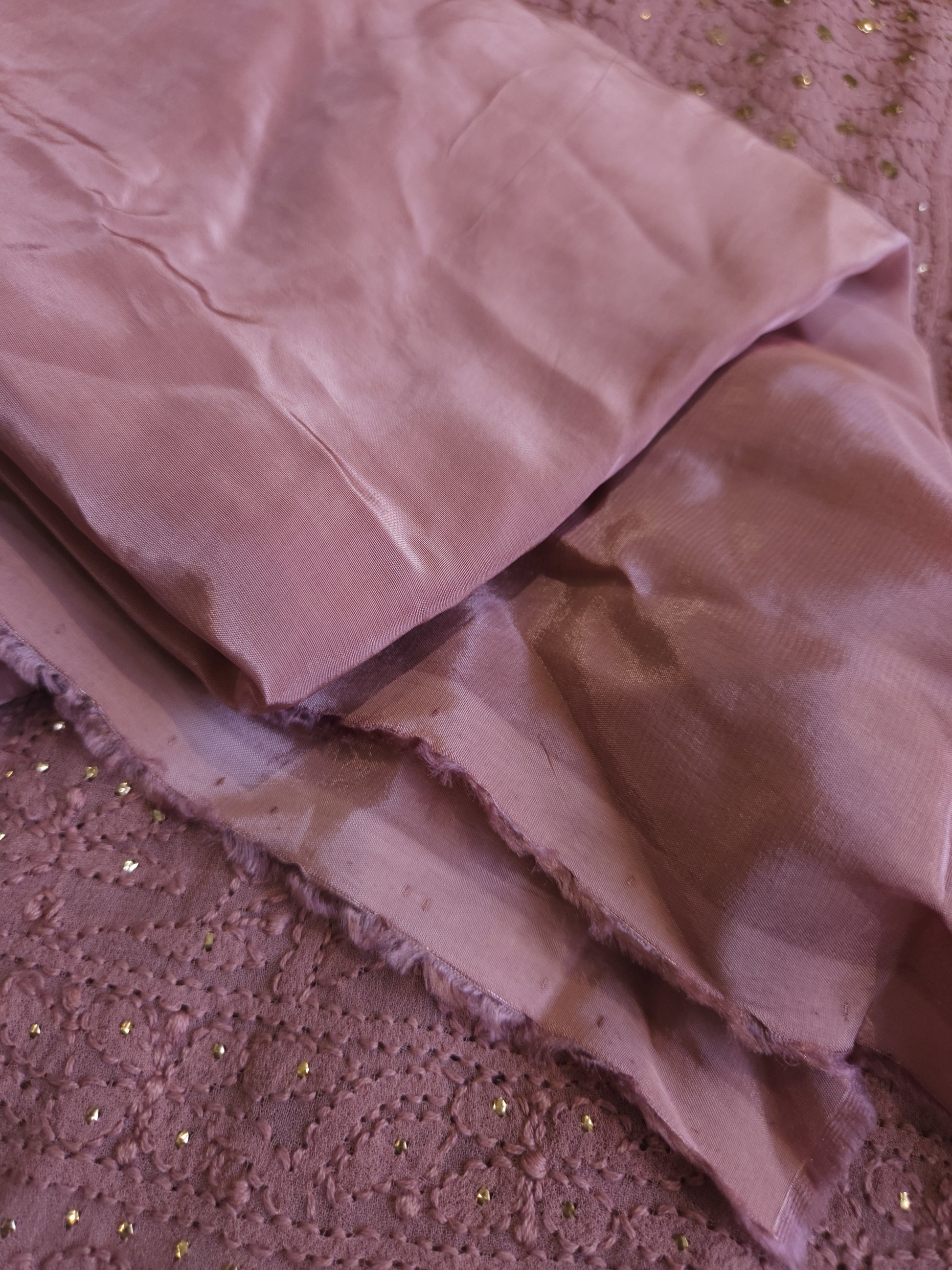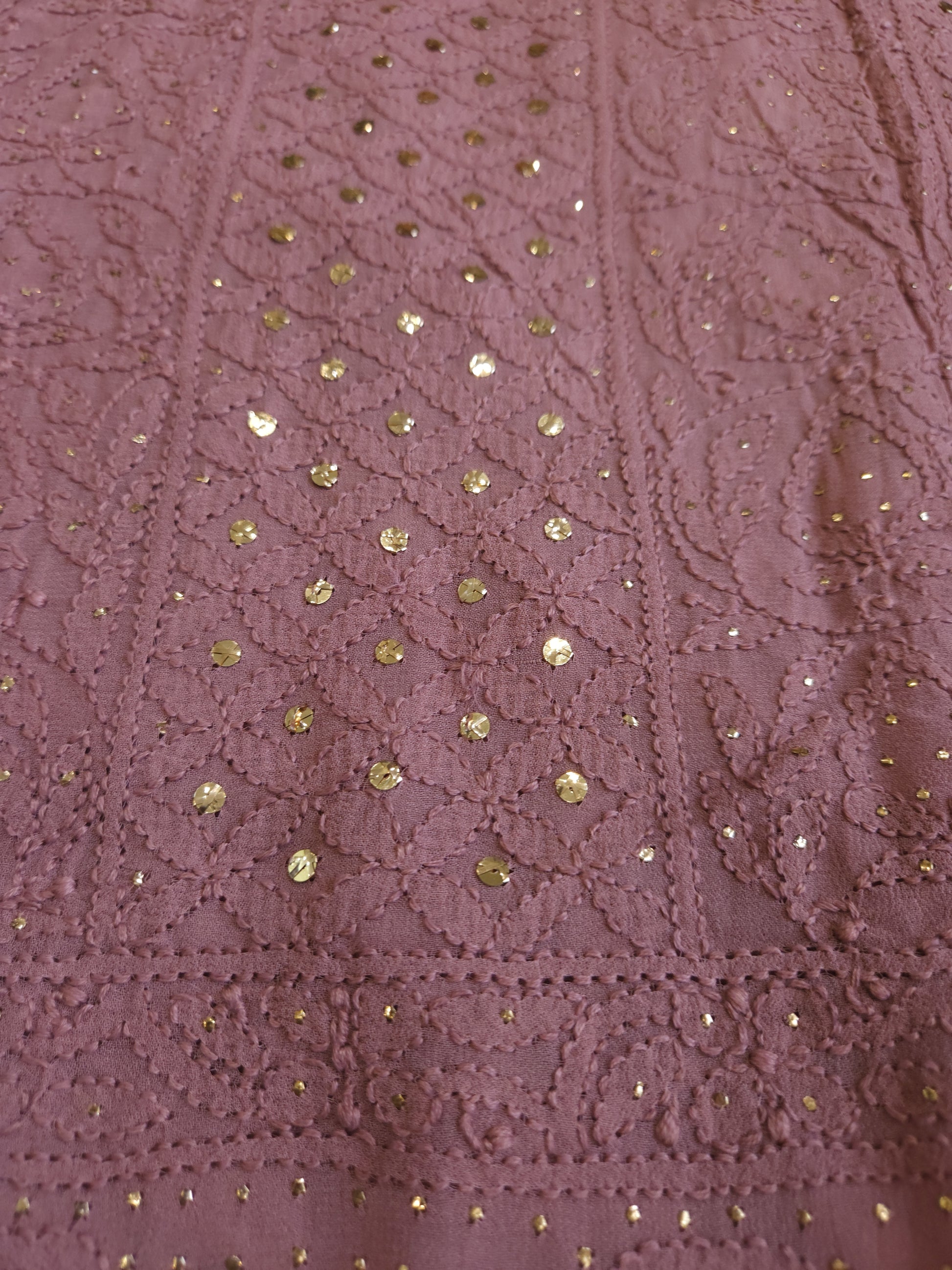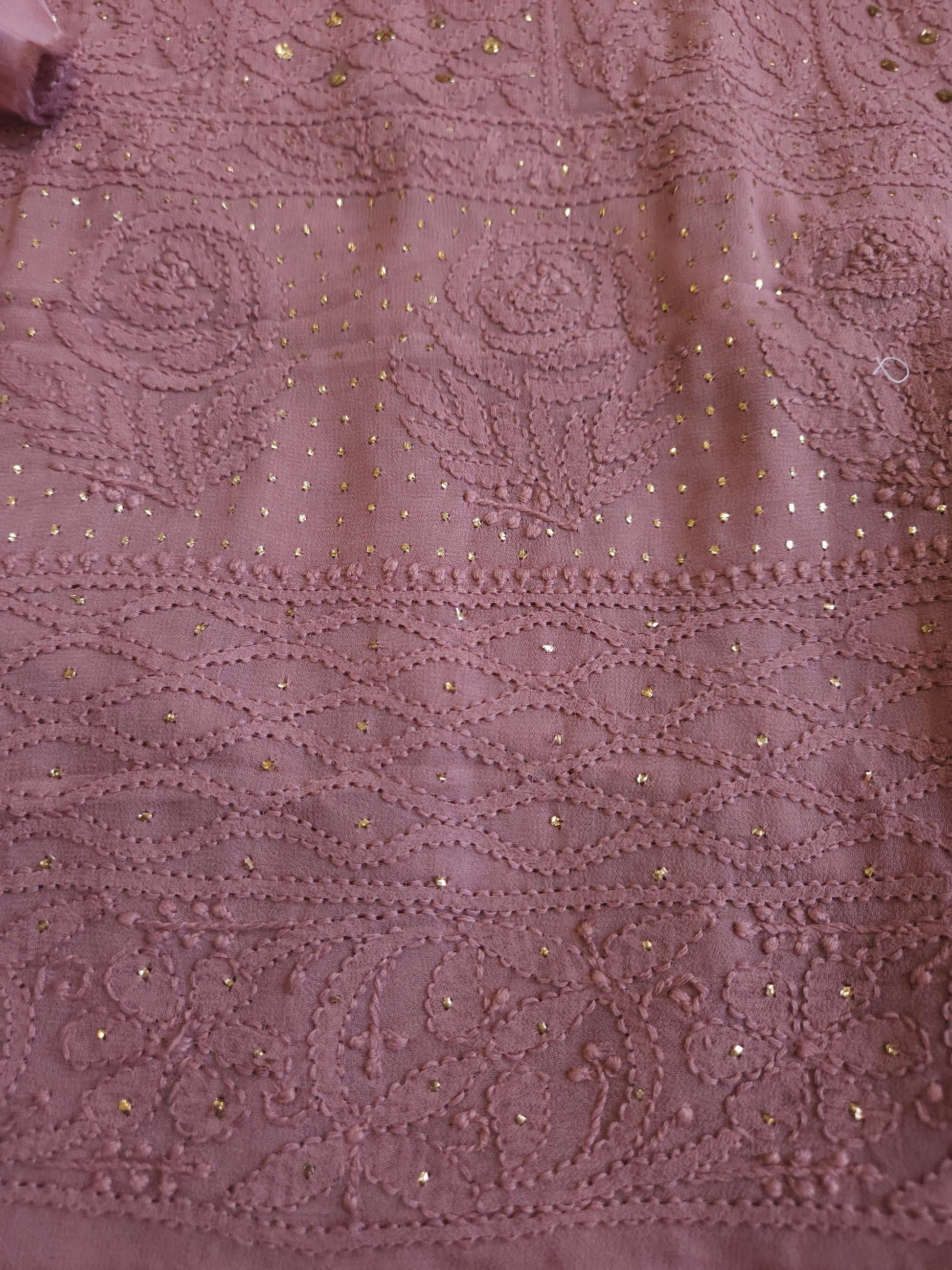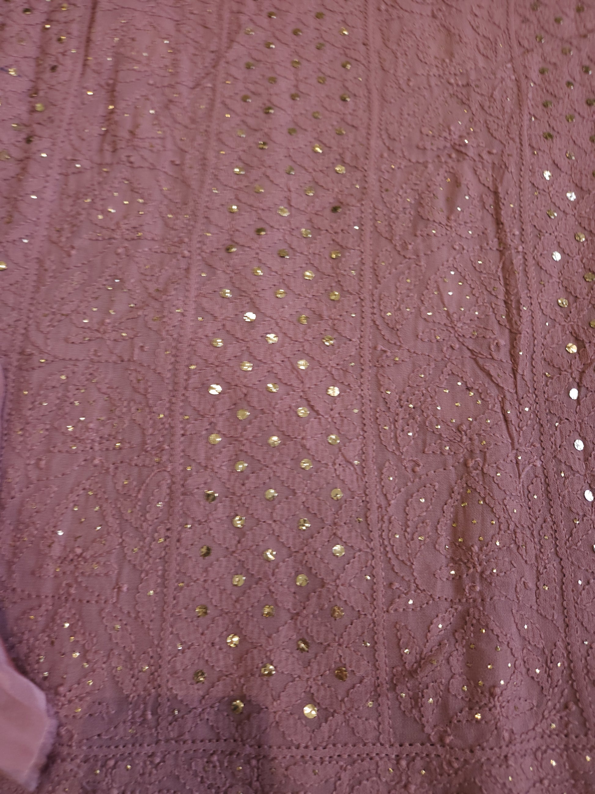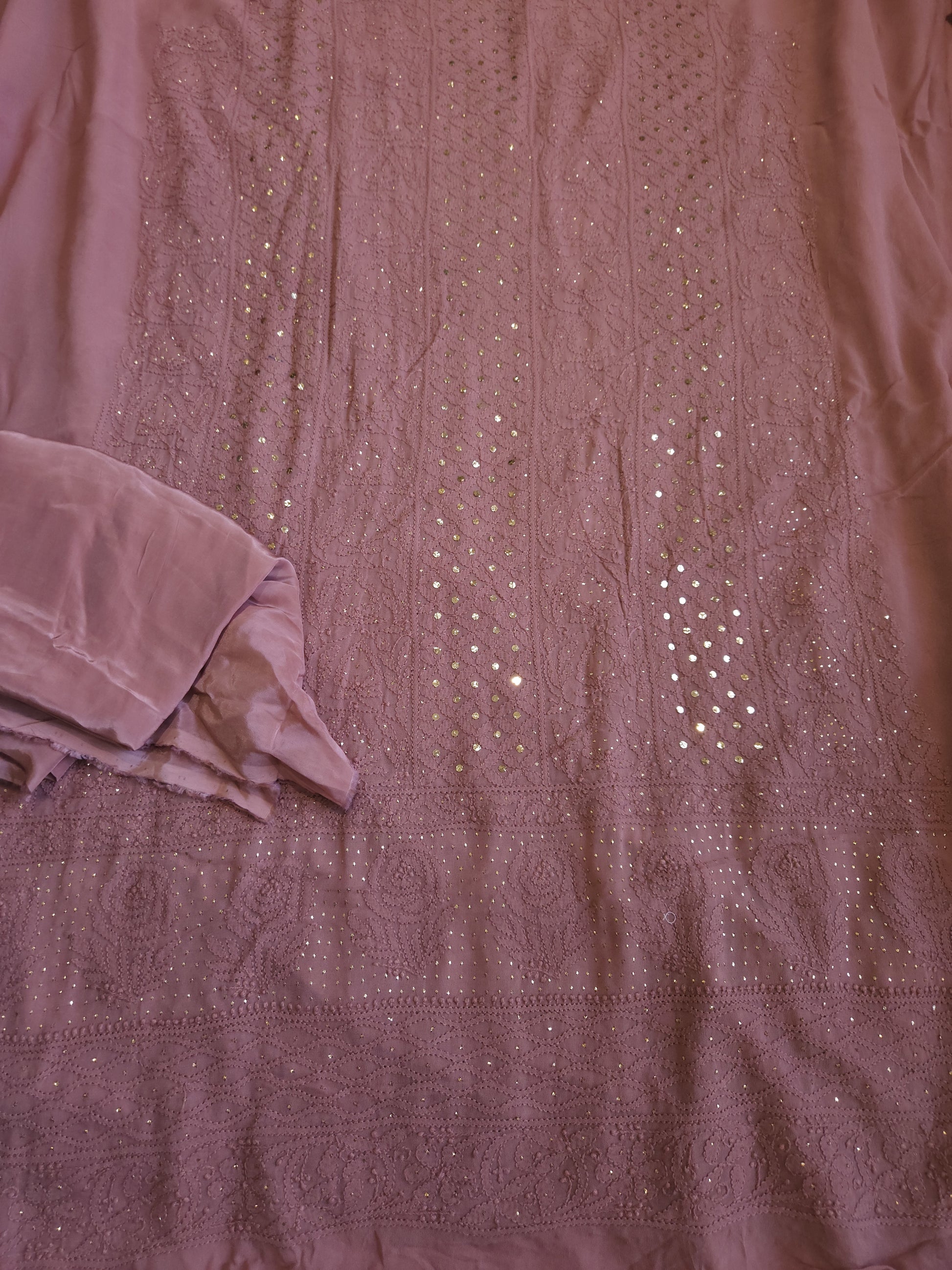 Authentic Lucknowi Handwork Chikankari and Kaamdani/Badla Handwork, Front Full Jaal Kurta with Border Bootie Work on Sleeves, with Semi Crepe Salwar Fabric, with Viscose Georgette Dupatta.